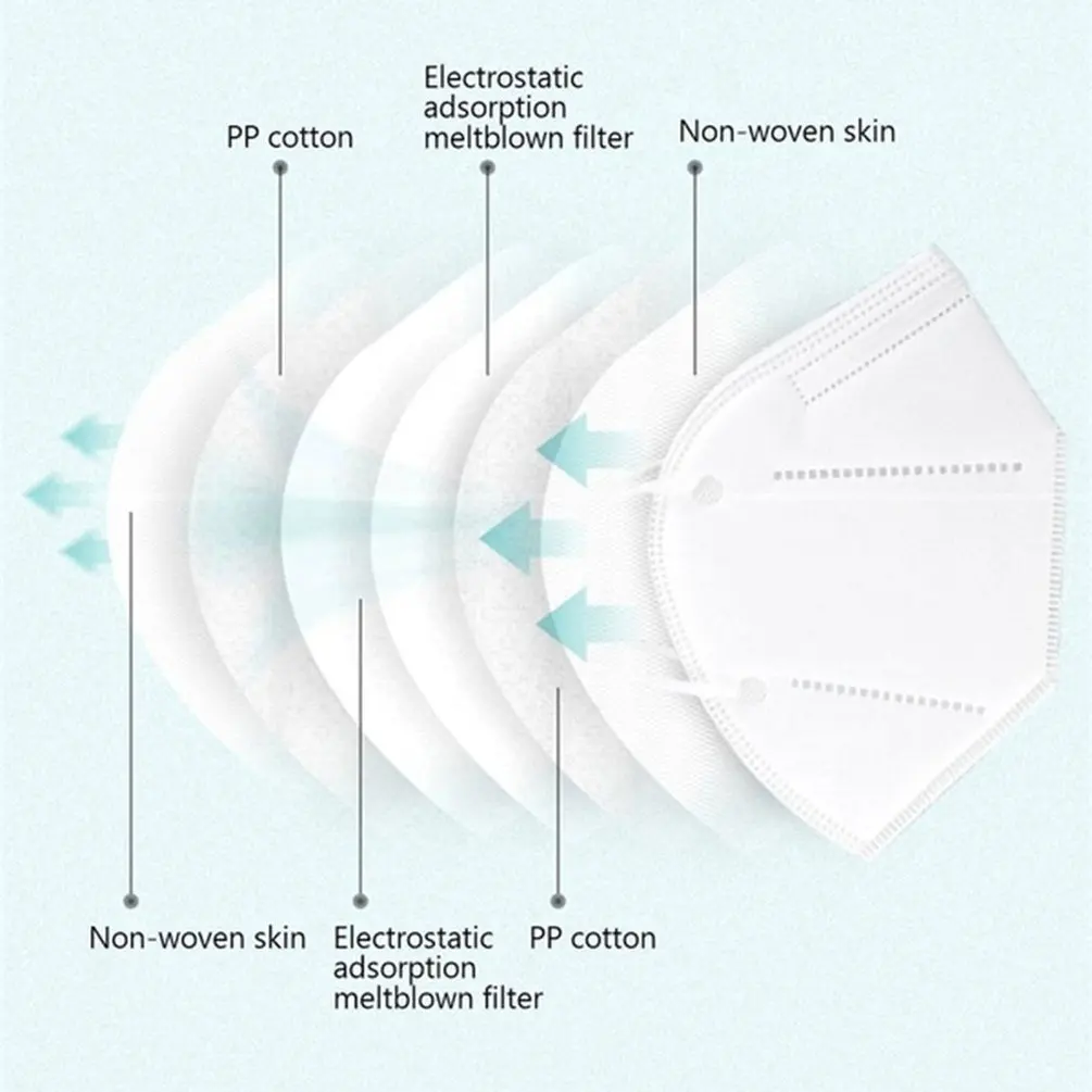 2. Ткань Meltblown: маска изготовлена из материала ткани meltblown, который обладает хорошей переносимостью кожи и комфортом при ношении.
