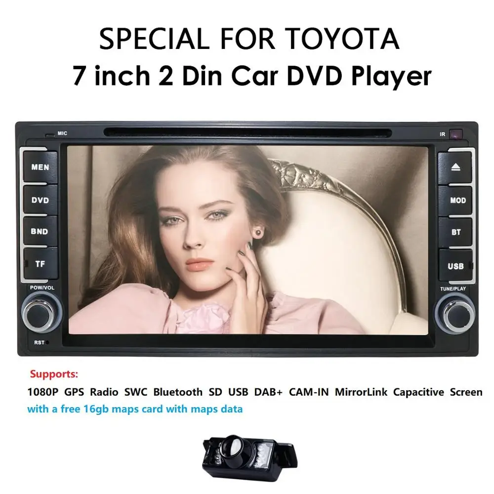 Автомобильный DVD-плеер 2DIN для Toyota RAV4,PradoHilux,Terios,Camry,Auris, универсальное Mirrorlink GPS-радио SWC BT SD USB rds am fm-радио, 7 дюймов