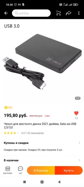 Хорошо работает, но корпус был мал для моего 2,5-дюймового жесткого диска. Поэтому чехол не закрыт.