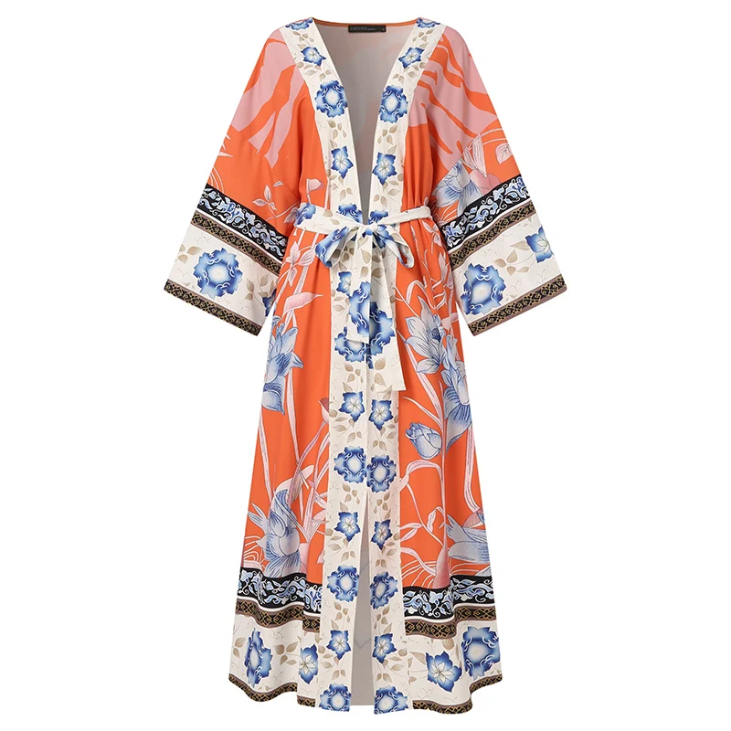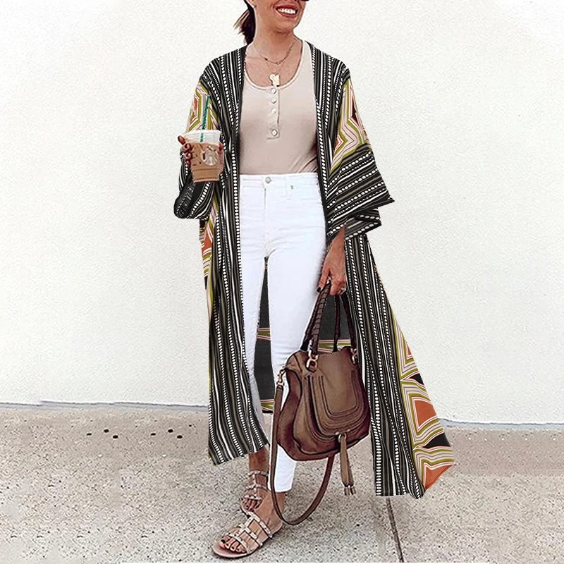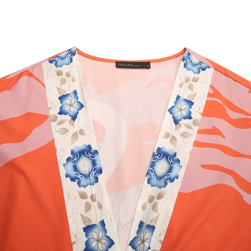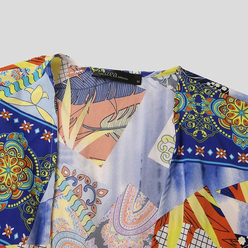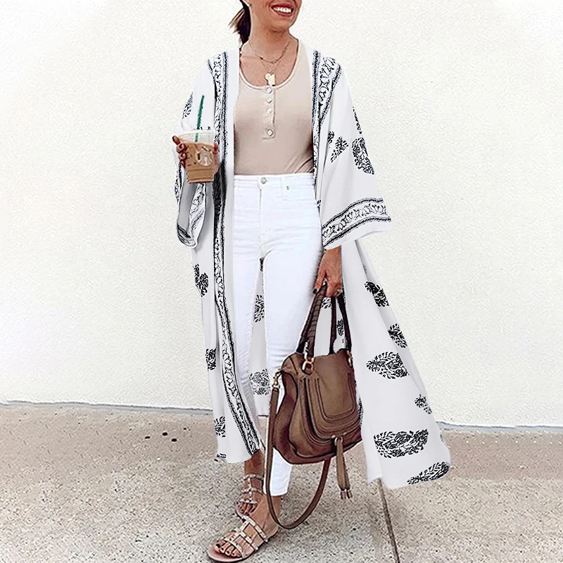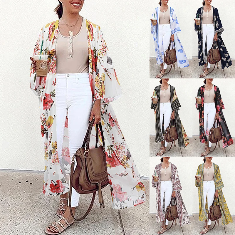 2022 кимоно ZANZEA с цветочным принтом, праздничный кардиган с открытой передней частью, Женская Повседневная накидка с длинным рукавом, топы, туника, блузки