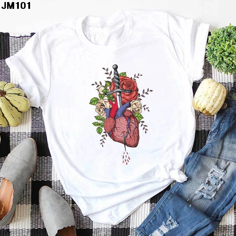 Футболка женская с принтом на заказ, повседневный Модный Белый Топ ...