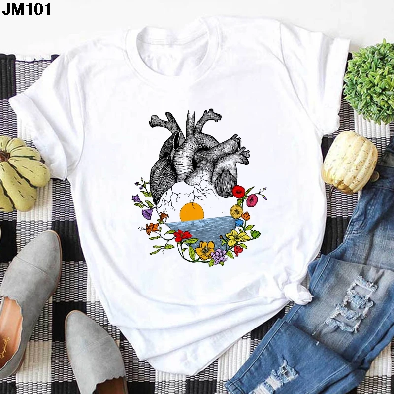 Женская футболка с принтом кактуса и растений, в стиле Харадзюку