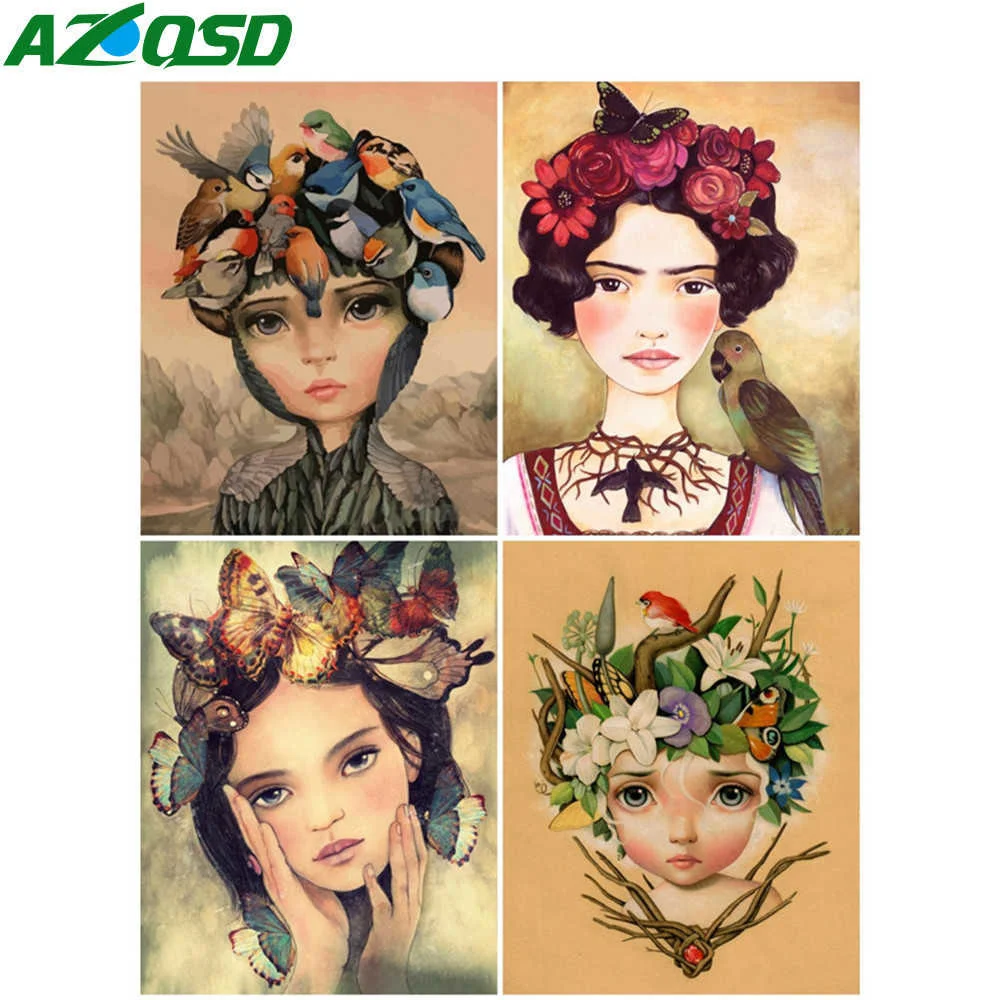Картина AZQSD по номерам девушка ручная роспись современное искусство на стену DIY Краска по номерам на холсте для взрослых Птицы Животные наборы подарок