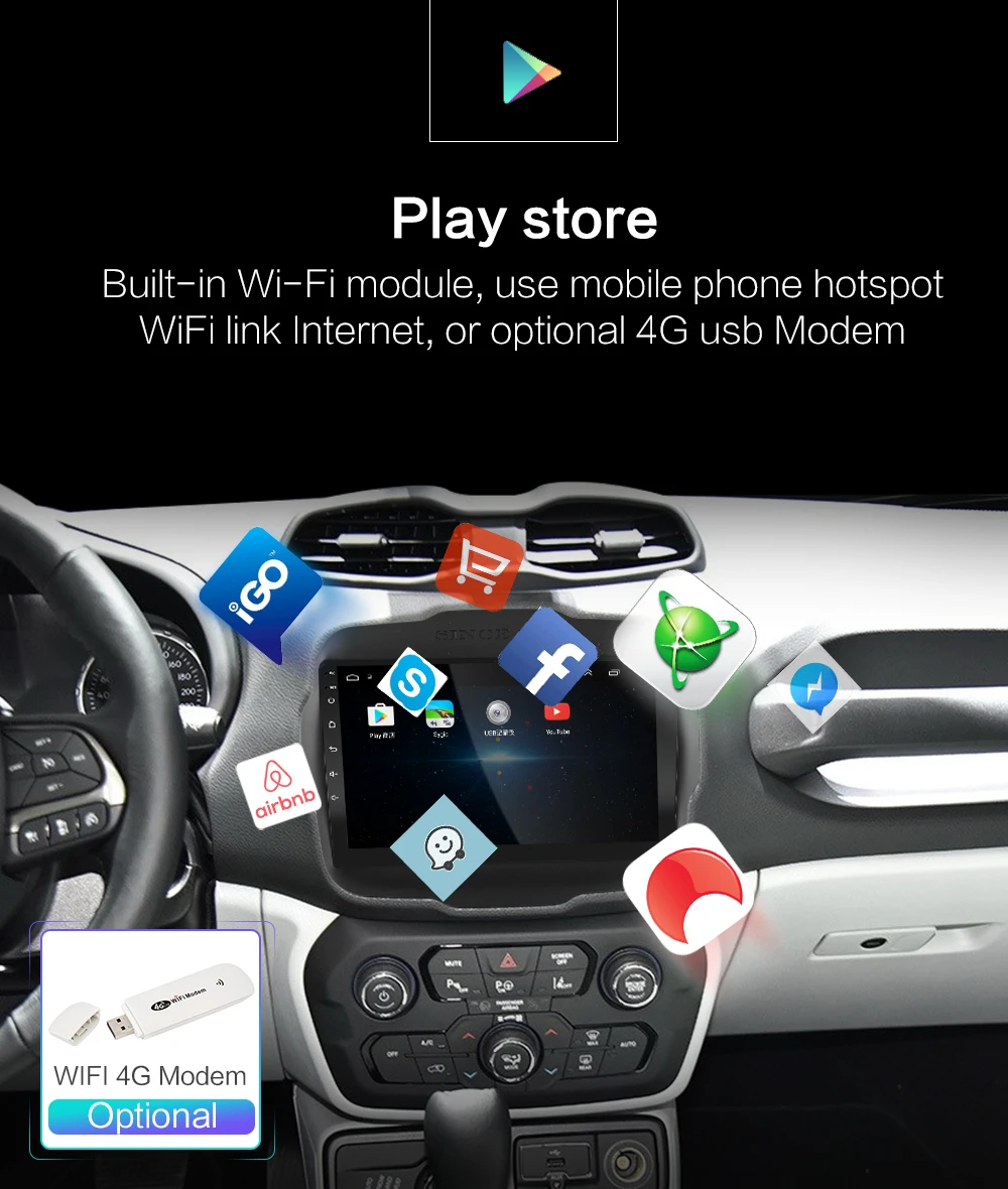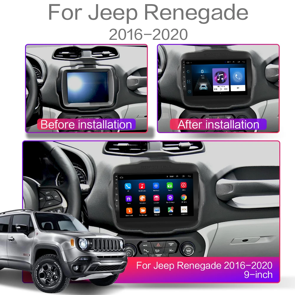 Для JEEP Renegade 2016 2017 2018 2019 2020 1, 4-х ядерный конфигурация включает в себя (Оперативная память + Встроенная память): 1 Гб + 16 ГБ/2 ГБ + 16 ГБ/2G + 32G / 4G-SIM-3560-2G + 32G [дополнительно]; 2, 8-ядерный конфигурация включает в себя (Оперативная память + Встроенная память): 7260L-2G + 32G / 7260L-4G + 64G / 4G-SIM-5760-2G + 32G / 4G-SIM-5760-4G + 64G / 4G-SIM-TS10-4G + 64G/4g-sim-ts6g на выбор + 128 3, 4-х ядерный содержит: версия: Android 8,1; Четырехъядерный процессор MTK8227 / Cortex-A7 Поддержка автомобиля logo5; Sfactory пароль: 8888 Разрешение: HD 2.5D,1024*600; Не поддерживает функцию AM, функцию RDS; Обычная посылка WiFi поддерживает функцию видеовыхода; Версия 3560-4G-SIM-WiFi: версия: Android 6,0; Поддерживает DSP; Не поддерживает функцию видеовыхода; 4, 8-Core содержат: версия: Android 9,0 или Android 10; Восемь ядер: CPU Quad core и GPU Quad core соответственно; Поддержка автомобиля logo5;Sfactory пароль: 8888; Разрешение: HD 2.5D,1024*600; Версия 7260L-WIFI: поддерживает DSP, функции; Не поддерживает видеовыход; 4G-SIM-5760-WIFI и 4G-SIM-TS10-WIFI версия: поддерживает функции DSP, Carplay, сплит-экрана; Не поддерживает видеовыход; 5. Операционная система Android может установить приложение Google Play store Skype Facebook youTube Twitter и т. Д.; 6. Поддержка: радиостанция, Bluetooth Вызов, Bluetooth музыка, управление рулевым колесом, встроенный WiFi, MP3, видео музыка (MPG, AVI), навигация, видеовыход, зеркальная связь, USB 4G LTE WIFI ключ и другие функции; Поддержка OBD (опционально) Поддержка DAB + (опционально)