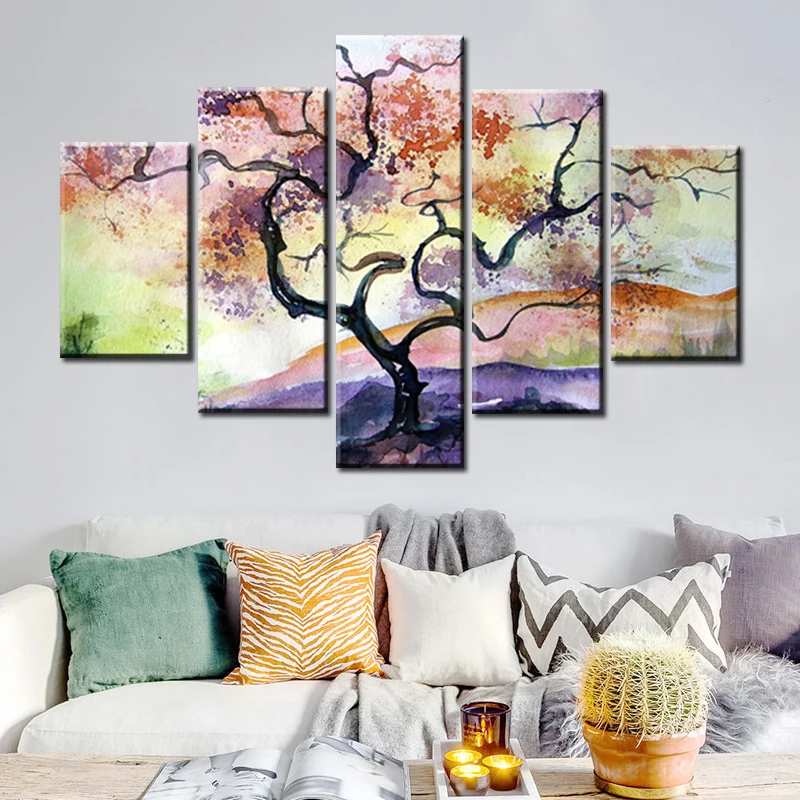 Настенная Модульная картина, украшение для дома, 5 панелей, деревья...