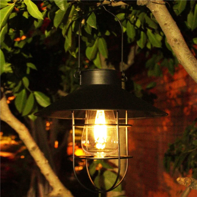 Уличная лампа-фонарь на солнечной батарее, водонепроницаемый винтажный металлический садовый светильник на солнечной батарее с вольфрамовой лампочкой для декоративного внутреннего дворика, заднего двора