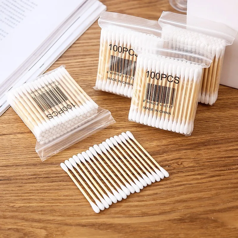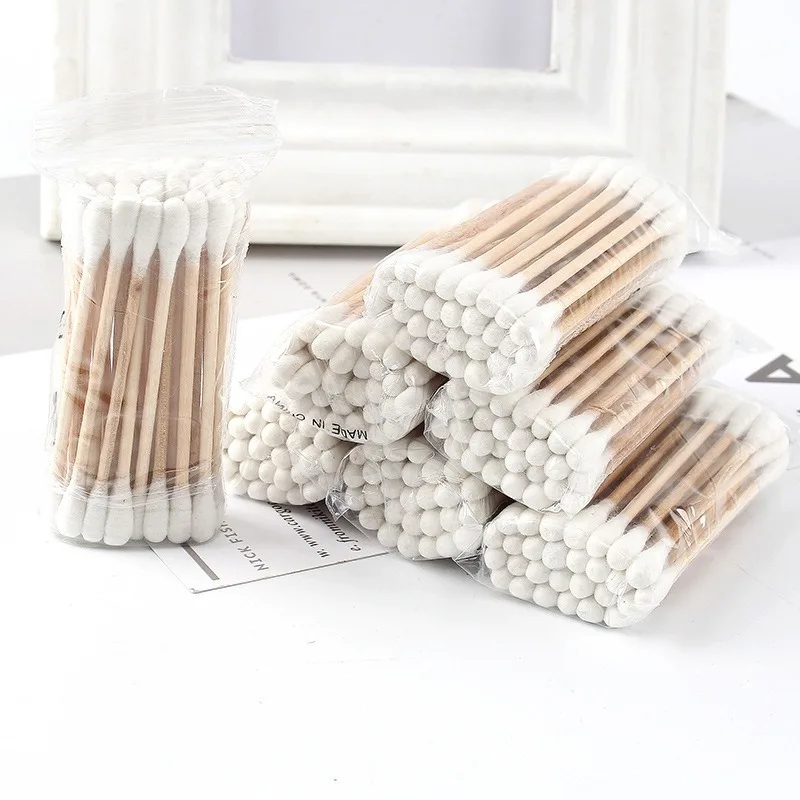 Ватный тампон с деревянной ручкой, принадлежности для макияжа, ювелирные изделия, ватные палочки с двойной головкой, инструменты для чистки ушей и носа