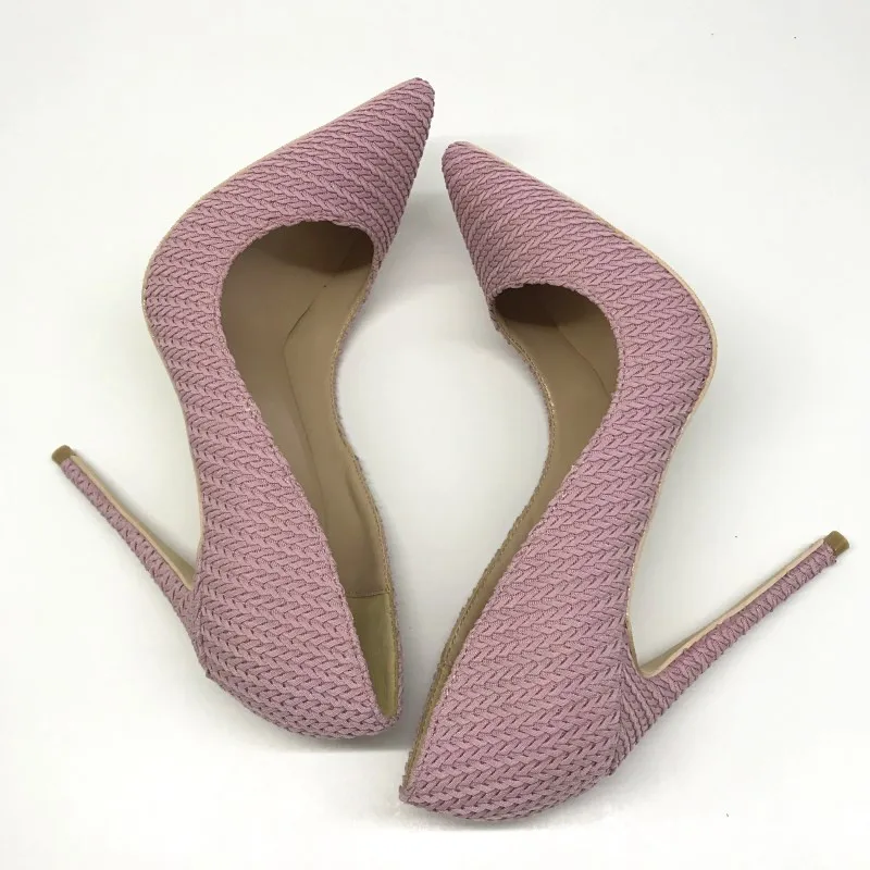 Женские туфли-лодочки с острым носком Tikicup, розовые вязаные туфли на высоком каблуке-шпильке, модные дизайнерские туфли больших размеров 42 43 44 45