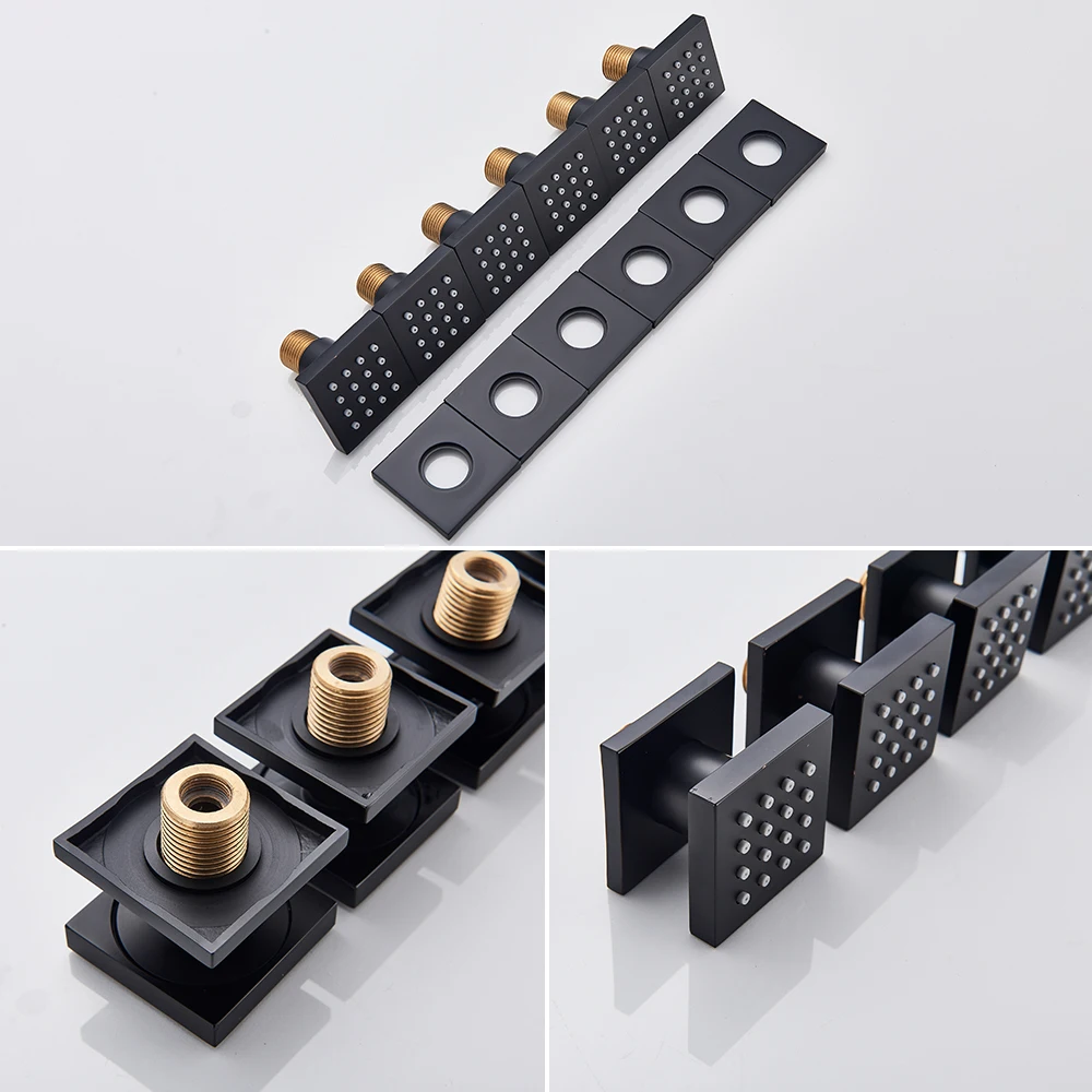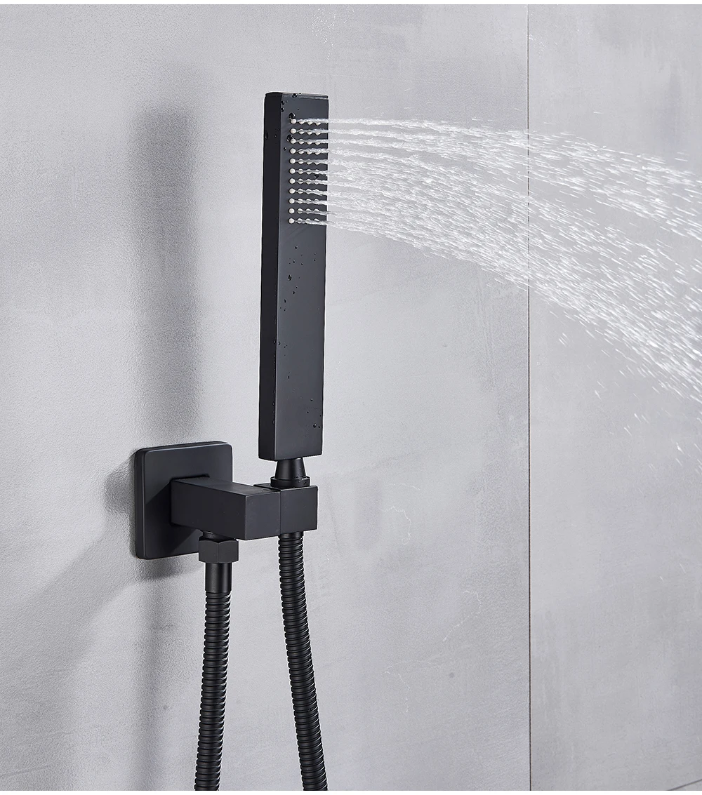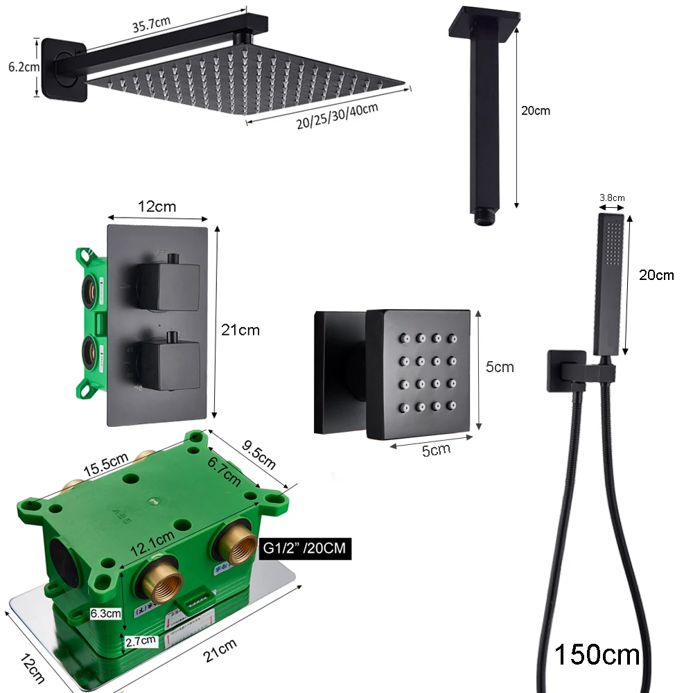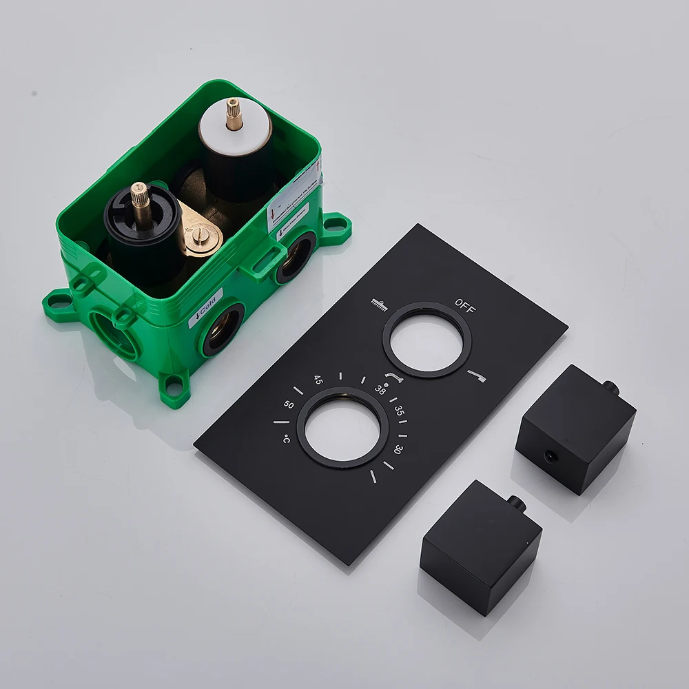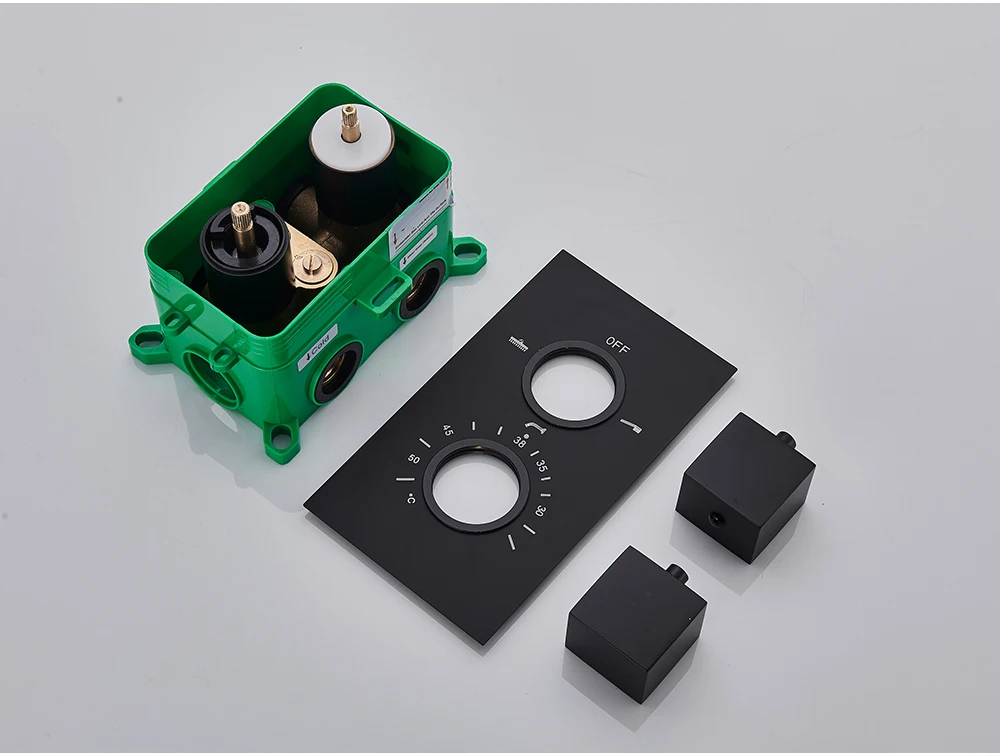 Смеситель для душа, черный, матовый, термостатический, скрытый, лат...