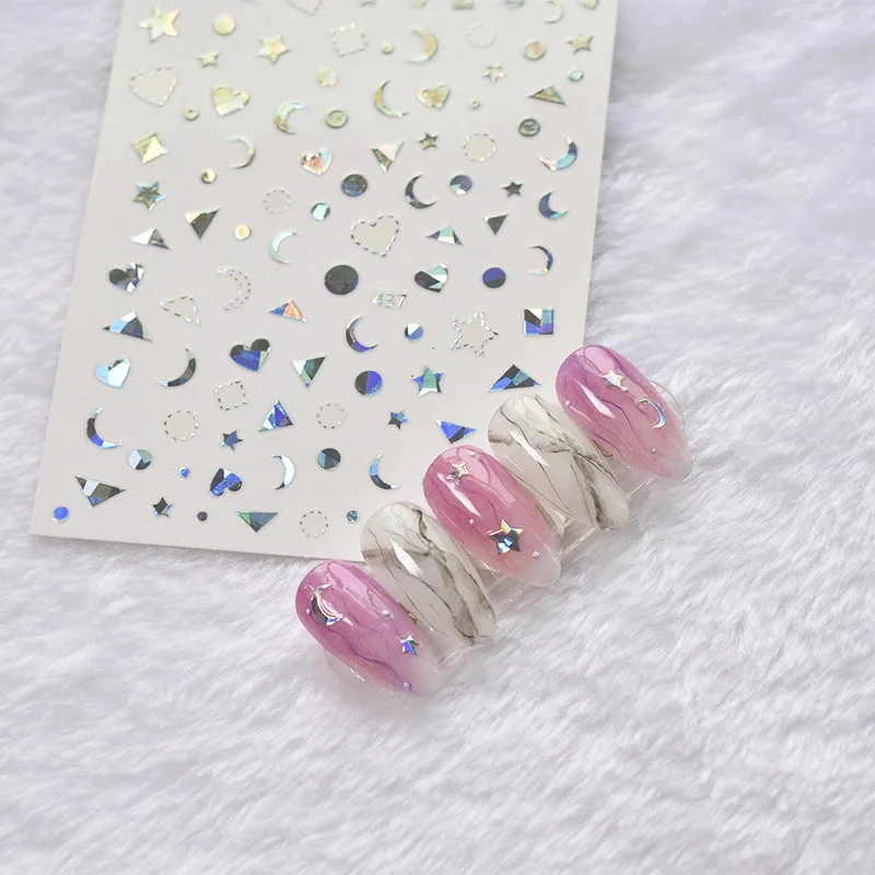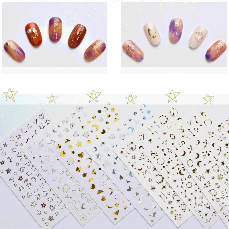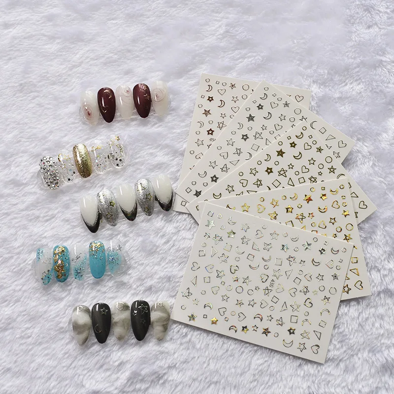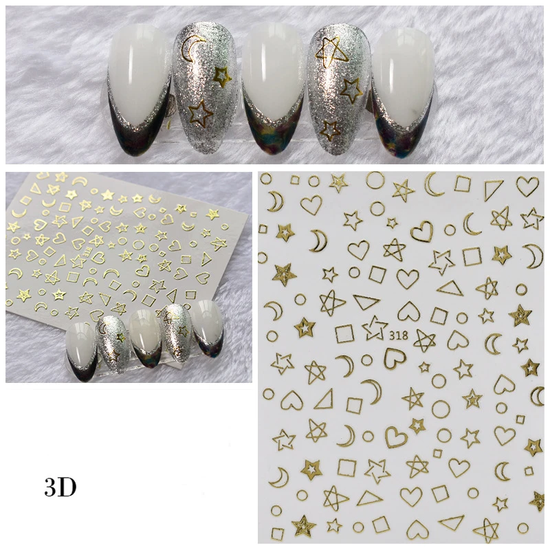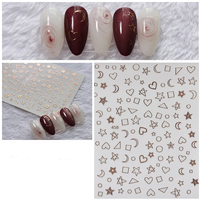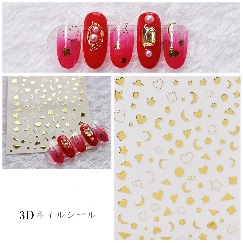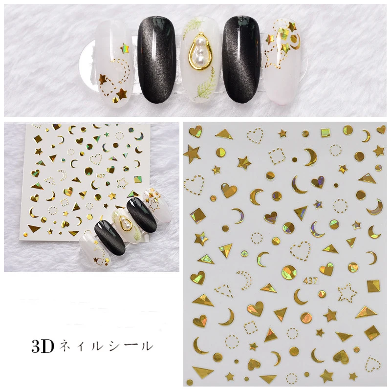 3D ногтей наклейки-звездочки с красным лазером золотистый и черный узорами, дизайн ногтей наклейки на лето и весну деколь декорации "сделай сам"