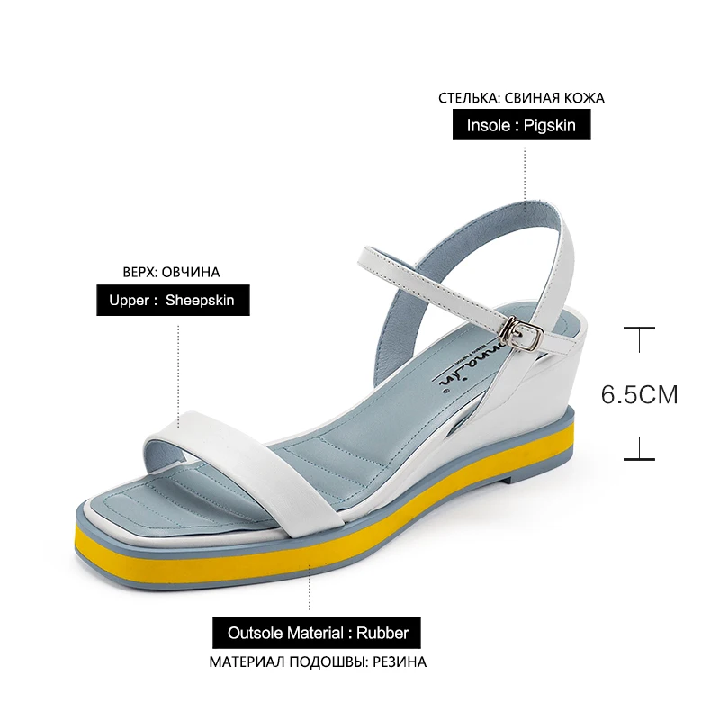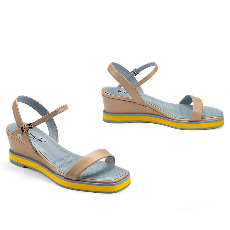 Donna-in2021 Летние босоножки из натуральной овечьей кожи; Босоножки на танкетке; Классическая элегантная женская обувь на платформе