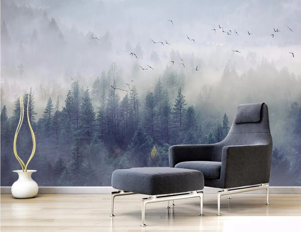 Самоклеящиеся обои на заказ, в скандинавском стиле, свежий лес, пейзаж, настенные фрески для гостиной, спальни, 3d фото