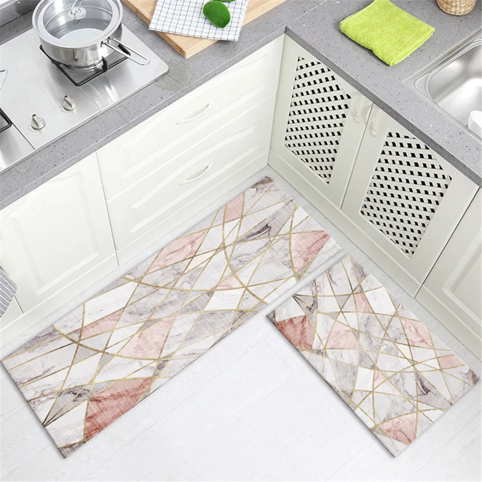 Скандинавский Простой Мраморный Кухонный Коврик для пола, нескользящий влагопоглощающий длинный коврик для ванной, фланелевый прикроватный коврик для девичьего декора комнаты