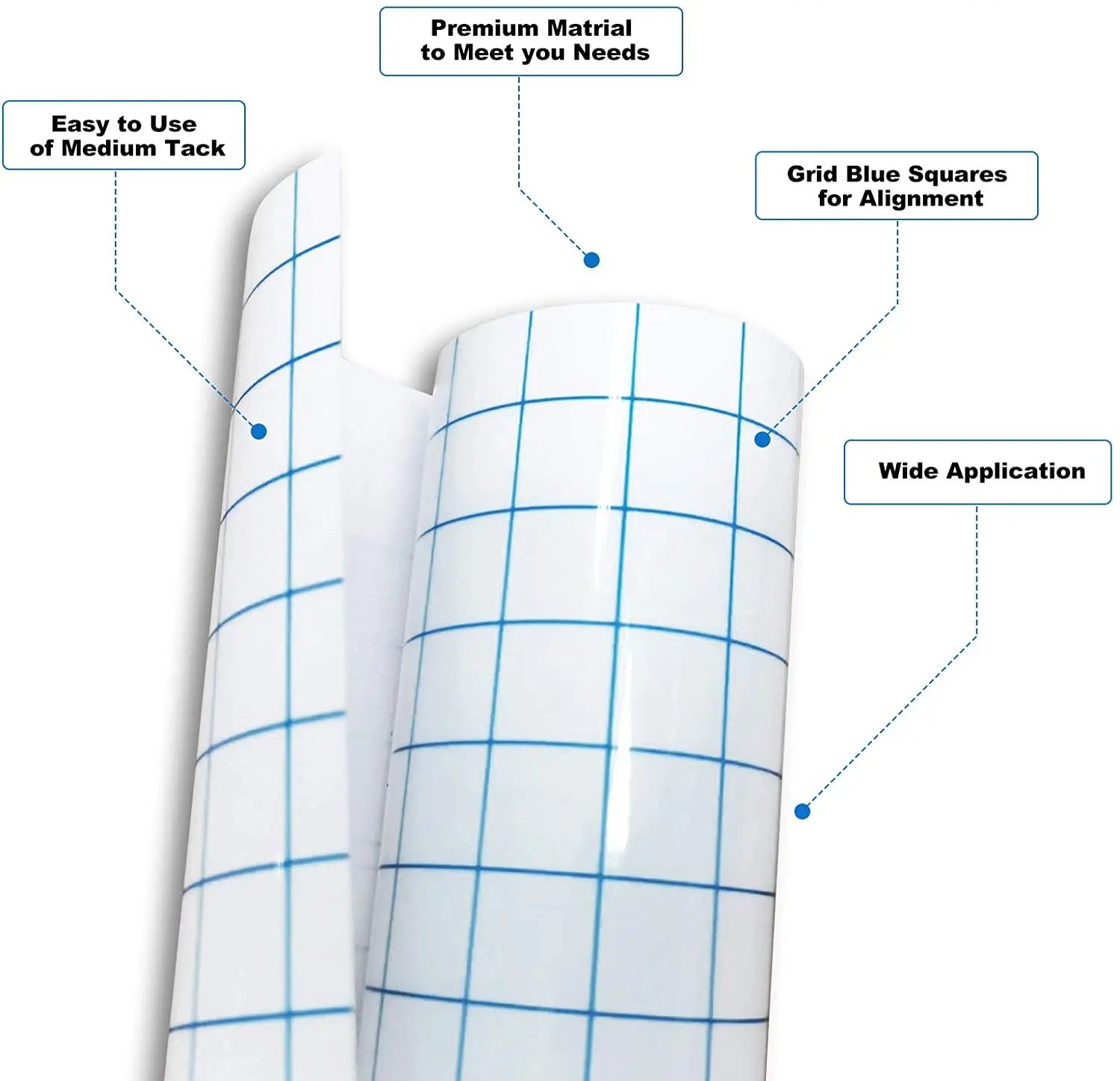 12x60 дюймовая виниловая трансферная бумажная лента, рулон клейкой ленты Cricut, прозрачная Выравнивающая сетка, бумага горячей фиксации для позиционирования бумаги s