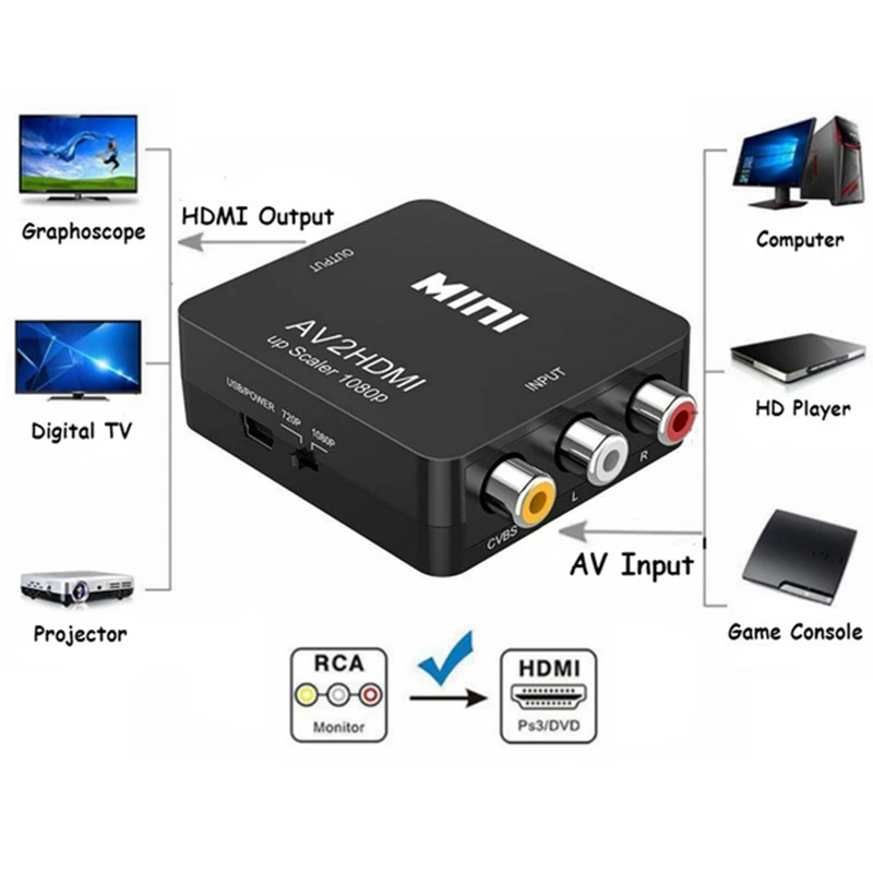 Преобразователь AV-HDMI, композитный преобразователь RCA в HDMI, аудио-видео адаптер 720P 1080P 60 Гц, портативный преобразователь с поддержкой NTSC