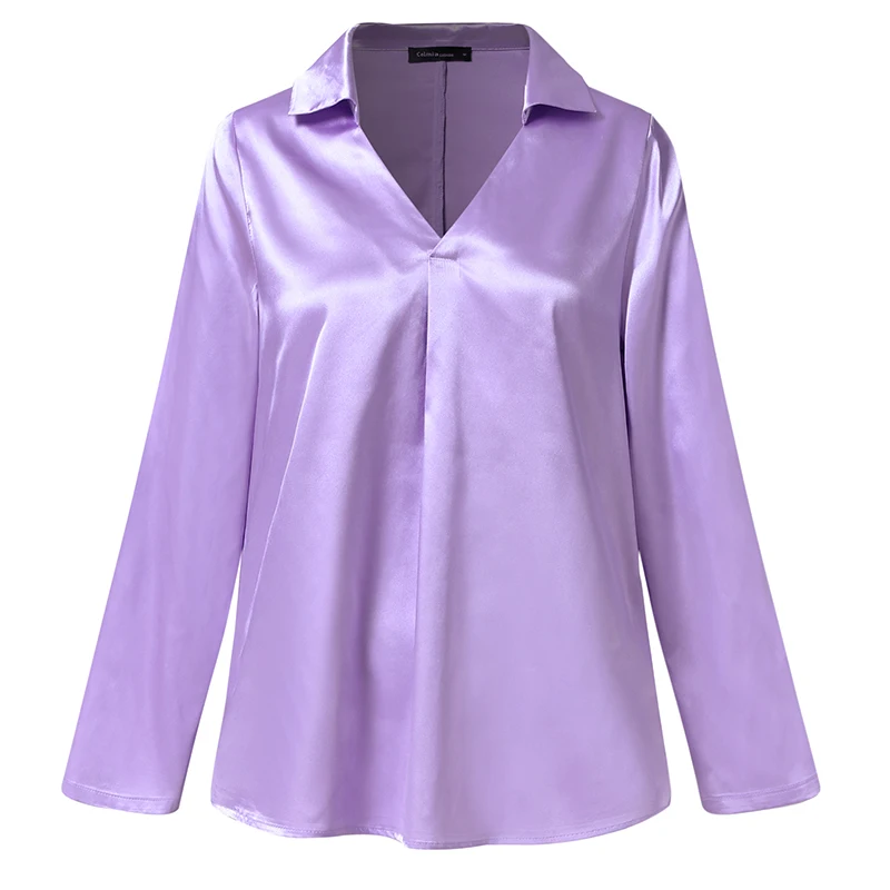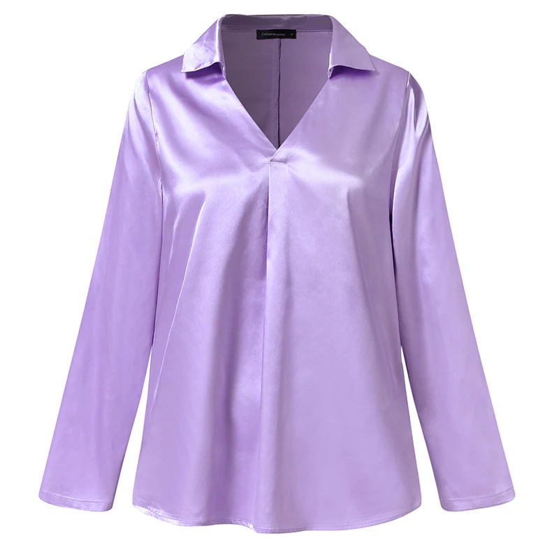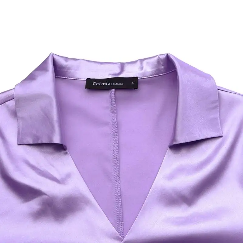 Элегантная Офисная Женская атласная блузка Celmia с длинным рукавом, шелковые топы 2022, модная однотонная Повседневная Туника с лацканами, женские блузы