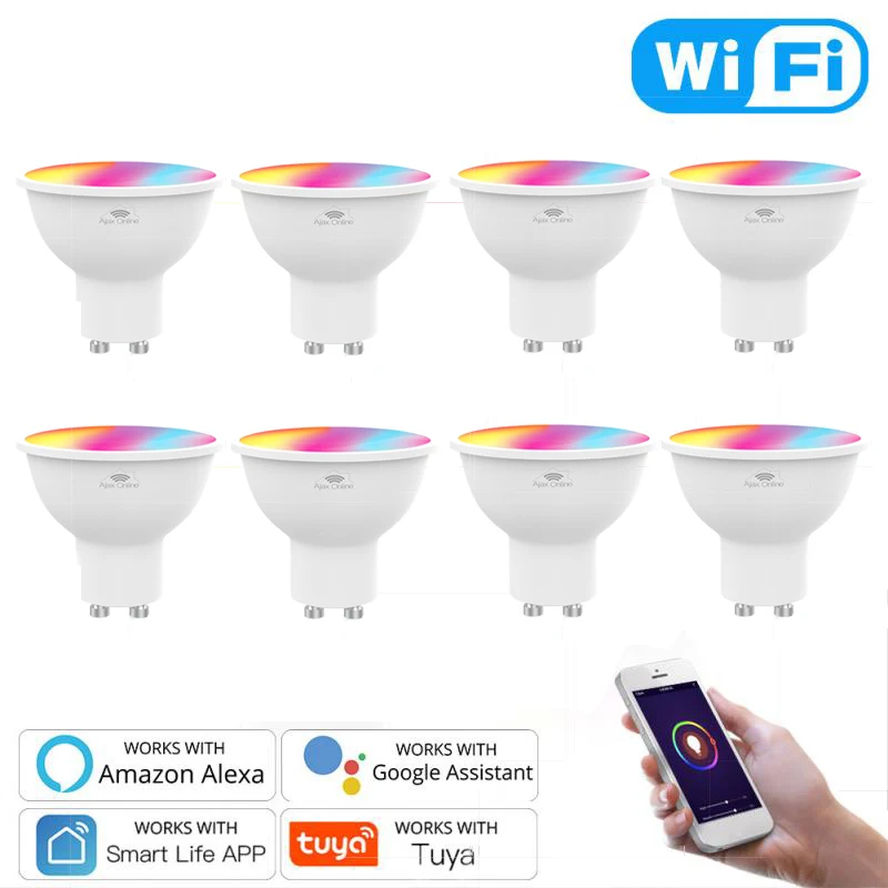 Умные светодиодные лампы GU10 с поддержкой Wi-Fi, RGBW C + W, 4,5 Вт