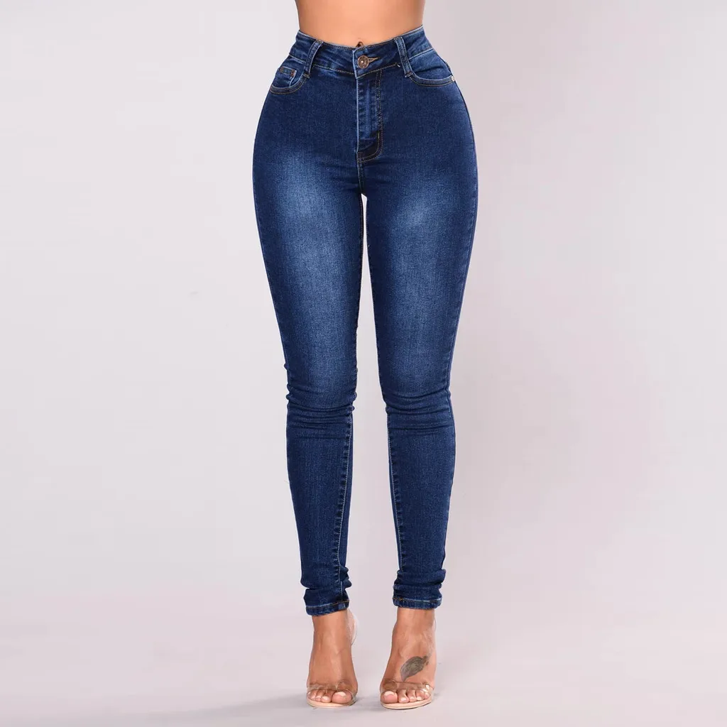 Модные женские Стрейчевые узкие джинсы с высокой талией; Повседневные узкие брюки; Большой размер
