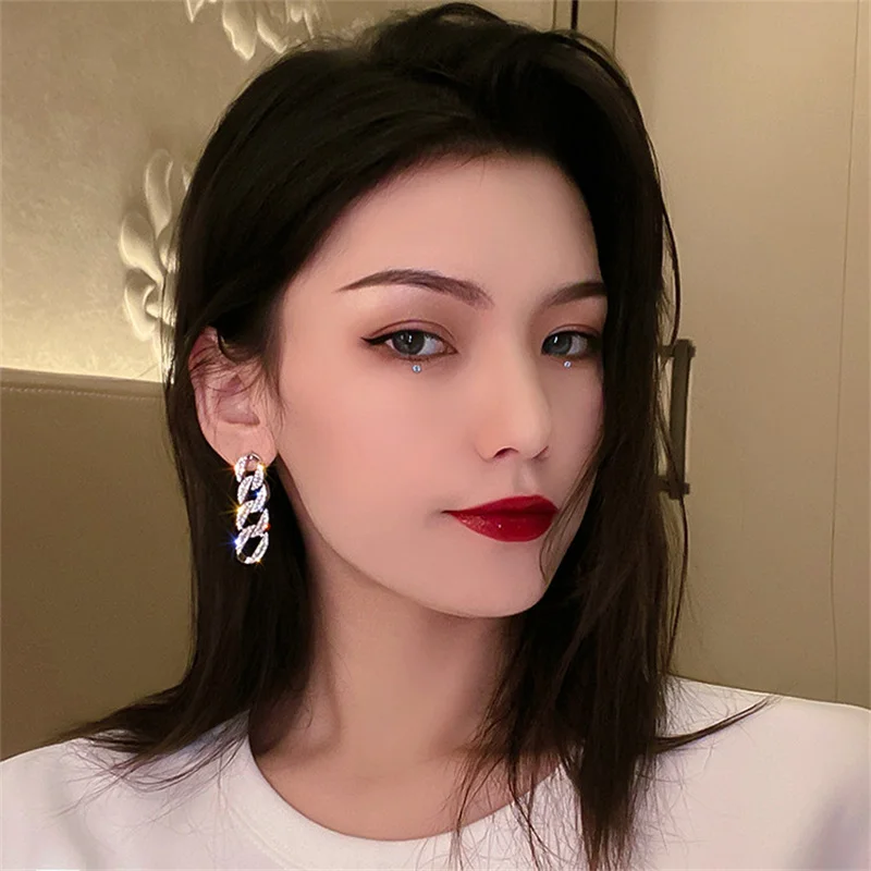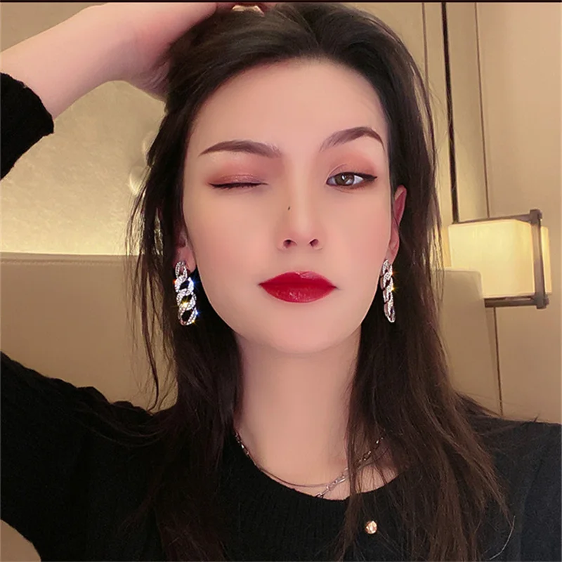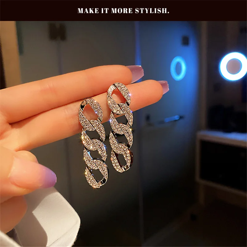 FYUAN висячие серьги с геометрической цепочкой для женщин длинные серьги Стразы в Корейском стиле ювелирные изделия для вечерние Ринок аксессуары