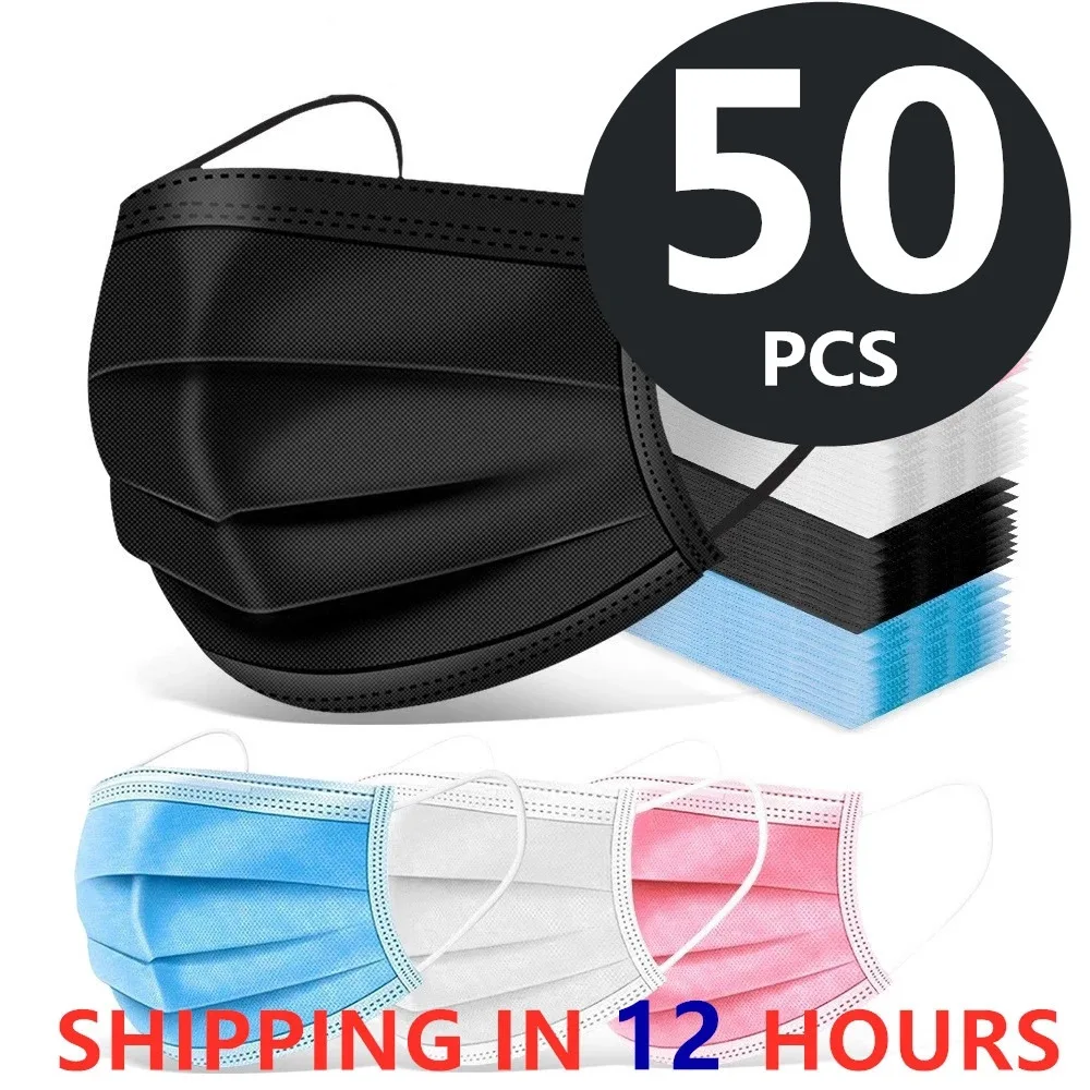 50 шт., одноразовые медицинские маски для лица, 3 слоя