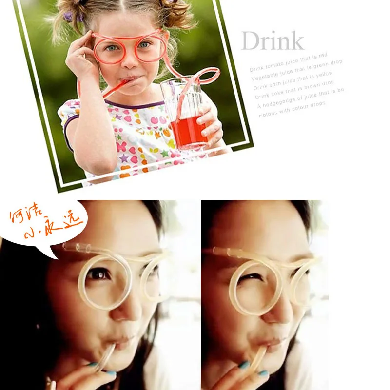 1 шт. забавные мягкие Пластик соломы очки гибкий питьевые соломки, ...