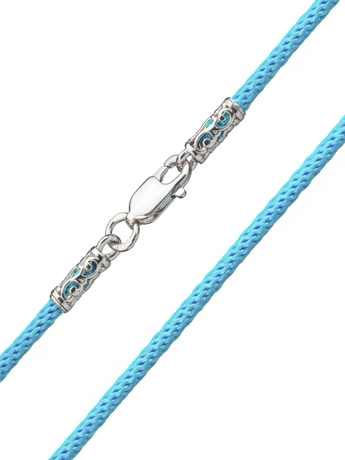Шнурок текстильный, Голубого цвета, с серебреным замком 925* пробы, толщина 2 мм, RUFINA