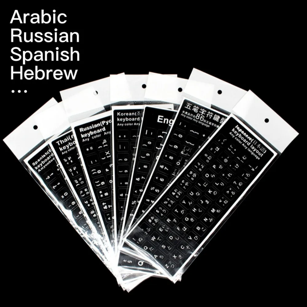 Клейкие наклейки для клавиатуры с алфавитом, ПВХ для арабского, английского, испанского, русского, немецкого, французского, корейского, итальянского языков клавиатура для ноутбуков