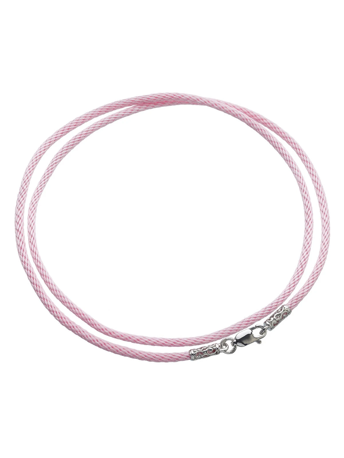 Шнурок текстильный, Розового цвета, с серебреным замком 925* пробы, толщина 2 мм, RUFINA