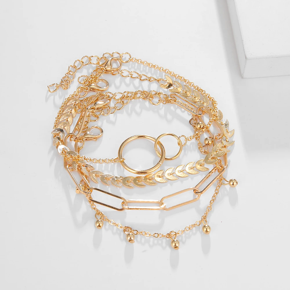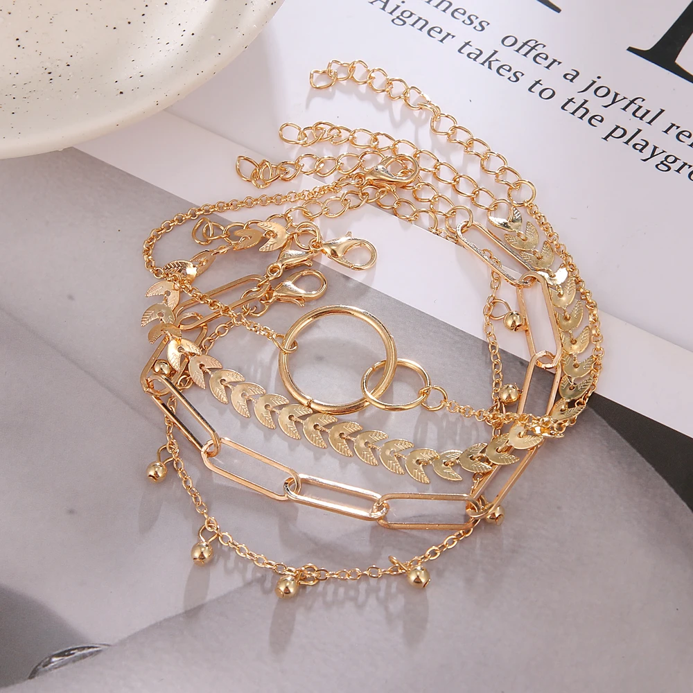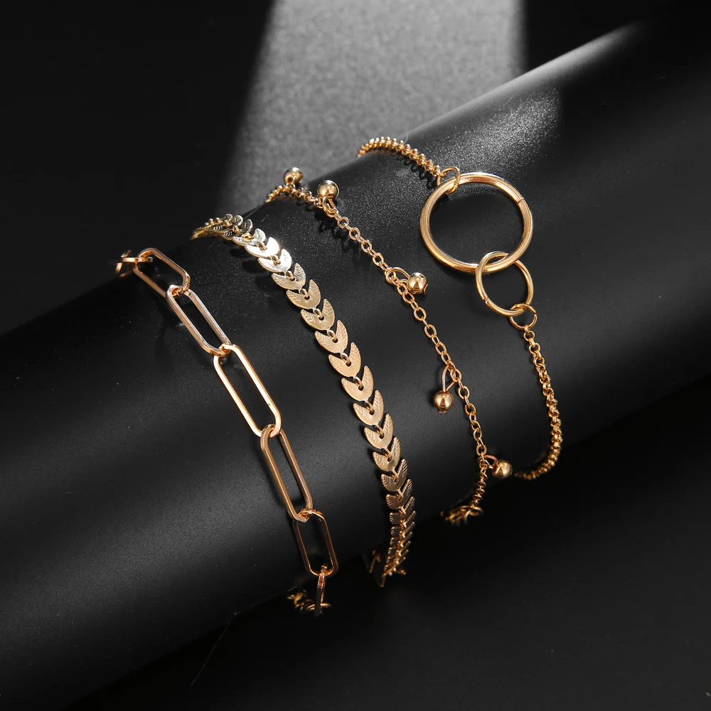 Комплект браслетов-цепочек с цепочкой рыбья кость Женский, винтажный комплект из круглых цепочек с переплетением, толстые панковские геометрические, 4 шт.компл., бижутерия