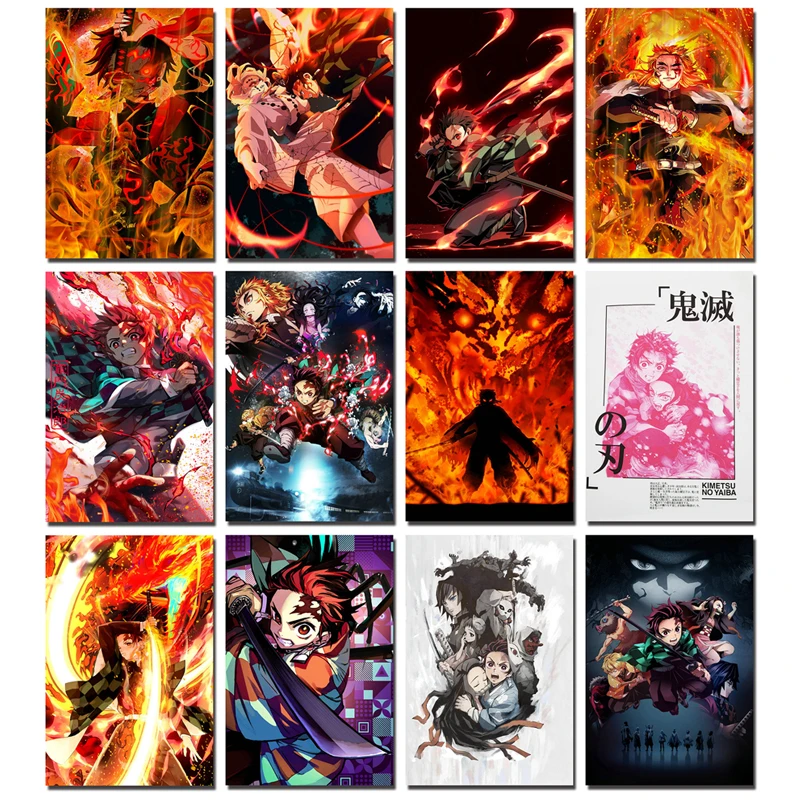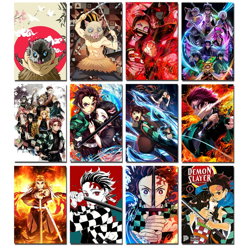Плакат Tanjirou Nezuko Zenitsu Inosuke Kanawo с изображением рассекающего демонов, художественный Шелковый Холст для настенных картин, украшение комнаты-002