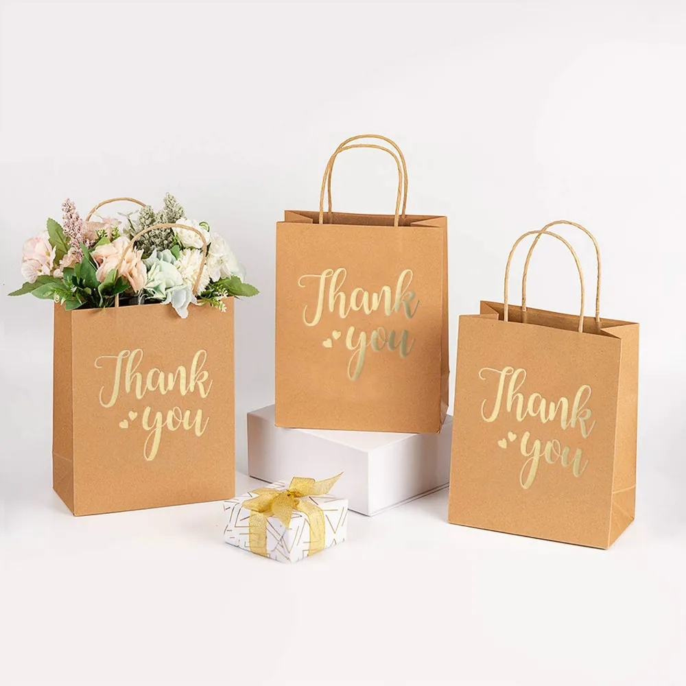 Подарочные пакеты для покупок, пакеты из золотой фольги с ручками, с надписью Thank You, коричневые бумажные мешки для свадьбы, дня рождения, вечеринки Baby Shower вечерние, 10 шт.