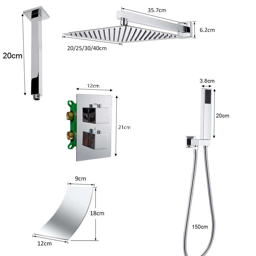 POIQIHY хромированный набор для душа, термостатический смеситель для ванной комнаты, монтируемый на потолок, насадка для душа, Встроенный термостат, клапан, смеситель