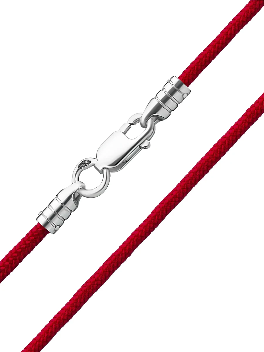 Шнурок текстильный из Paracorda, Красного цвета, с серебреным замком 925* пробы, толщина 1,5мм, RUFINA