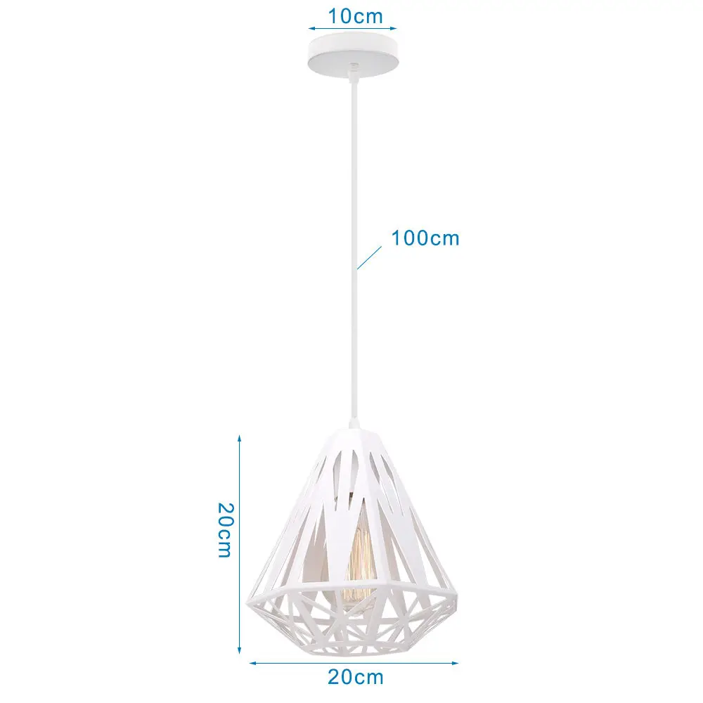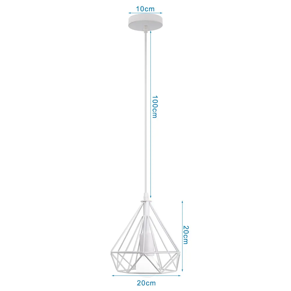 Категория: подвесной светильникКоличество: 1 шт.Материал: железоСтиль освещения: современный, винтажный, промышленныйЦвет: белыйТип светильника: потолочные светильникиПатрон лампы: E27 (лампы в комплект не входят)Тип источника светильник: лампа Эдисона, светодиодная лампа, лампа накаливанияДлина шнура: 100 см (регулируется)Размер основания потолка: диаметр10смРазмеры абажура: как показано на картинкеФорма абажура: клеткаНапряжение: 110-240 ВПитание: переменный токРазмер: как показано на картинкеПрименимое пространство: гостиная/столовая/ресторан/бар/ДругоеПримечание: лампа в комплект не входит, ее нужно купить самостоятельно!Посылка входит:1 x подвесные светильники (без лампы)