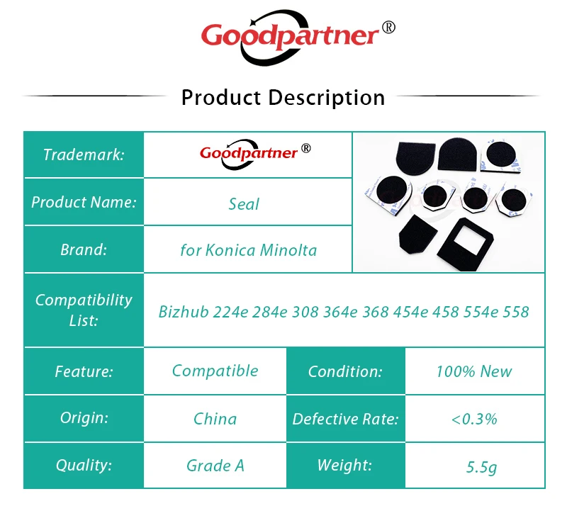 Уплотнение контейнера отработанного тонера 10X WX103 для Konica Minolta C224 C284 C308 C364 C368 C454 C554 C458 C558 C658 C220 C221 C258 C280