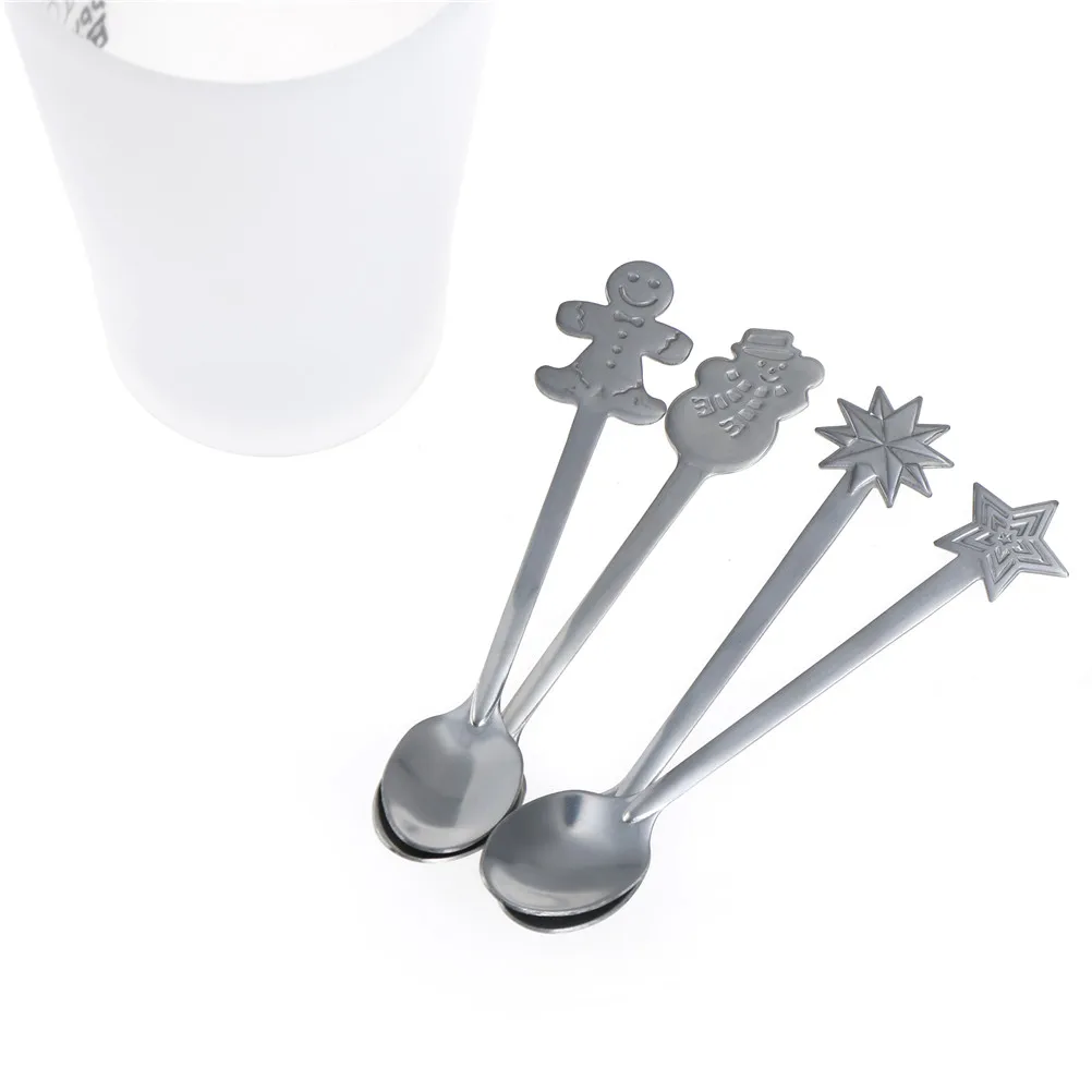 Рождественская кофейная ложка из нержавеющей стали, 4 шт.компл., Детские кофейные ложки для питья, чайная ложка, Рождественская посуда, подарки, новинка 2021