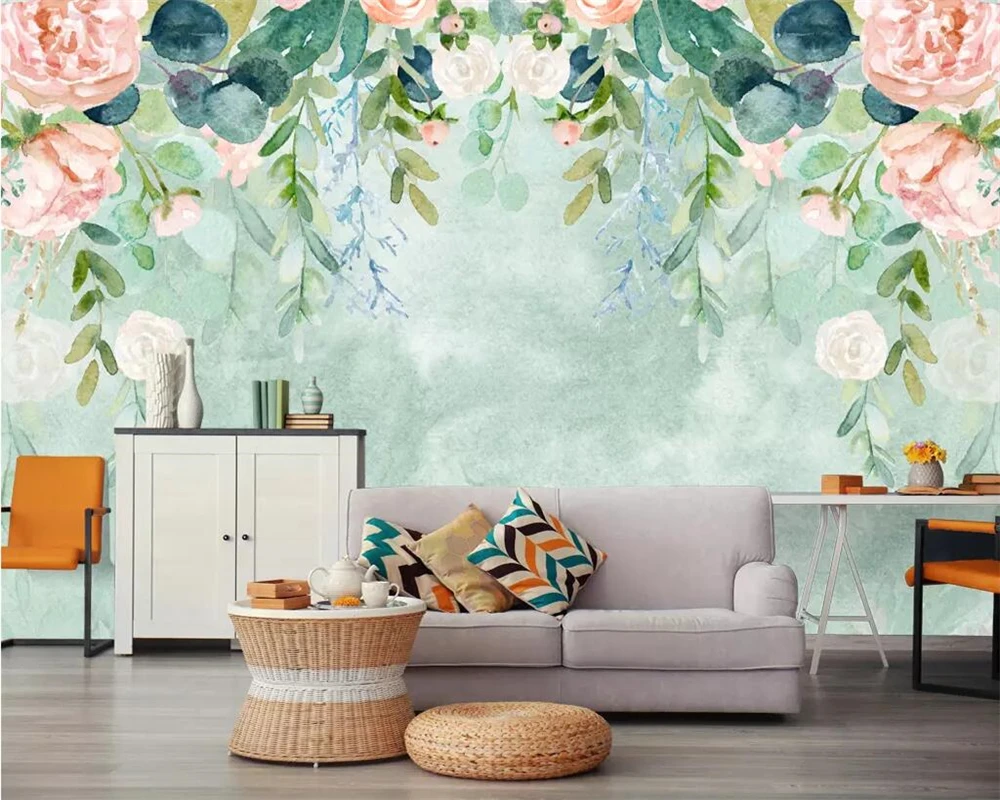 Самоклеящиеся обои на заказ в скандинавском стиле, маленькие свежие акварельные Мультяшные цветы ручной росписи, пасторальная настенная 3D-картина под Телевизор