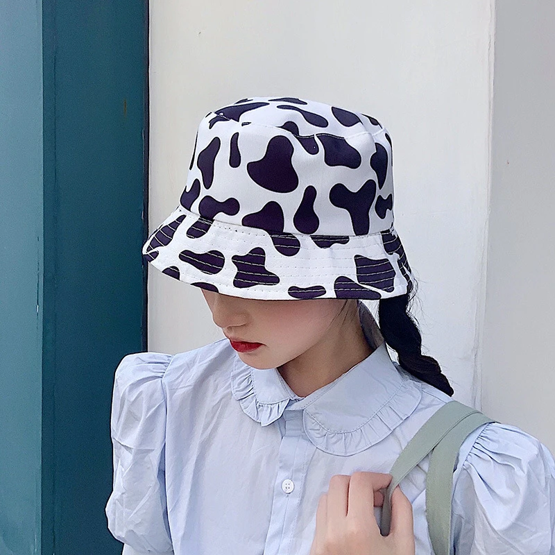 Панама хлопковая унисекс, шляпы Панамы шапки с коровьим узором, для мужчин и женщин, уличная Кепка От Солнца в стиле хип-хоп, черного и белого цвета