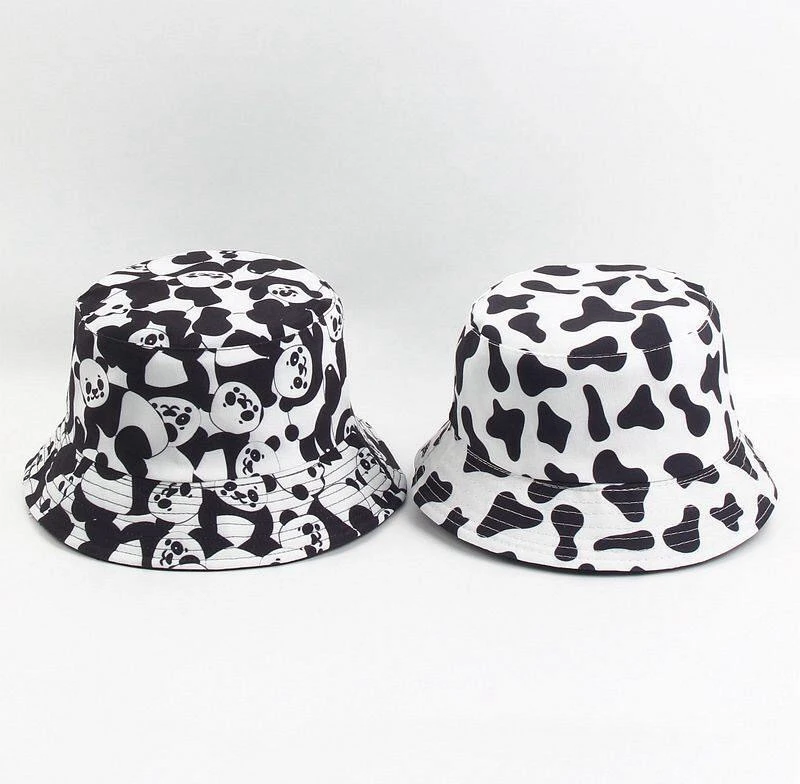 Панама шапки для женщин, Двусторонняя черная белая корова, панда, З...