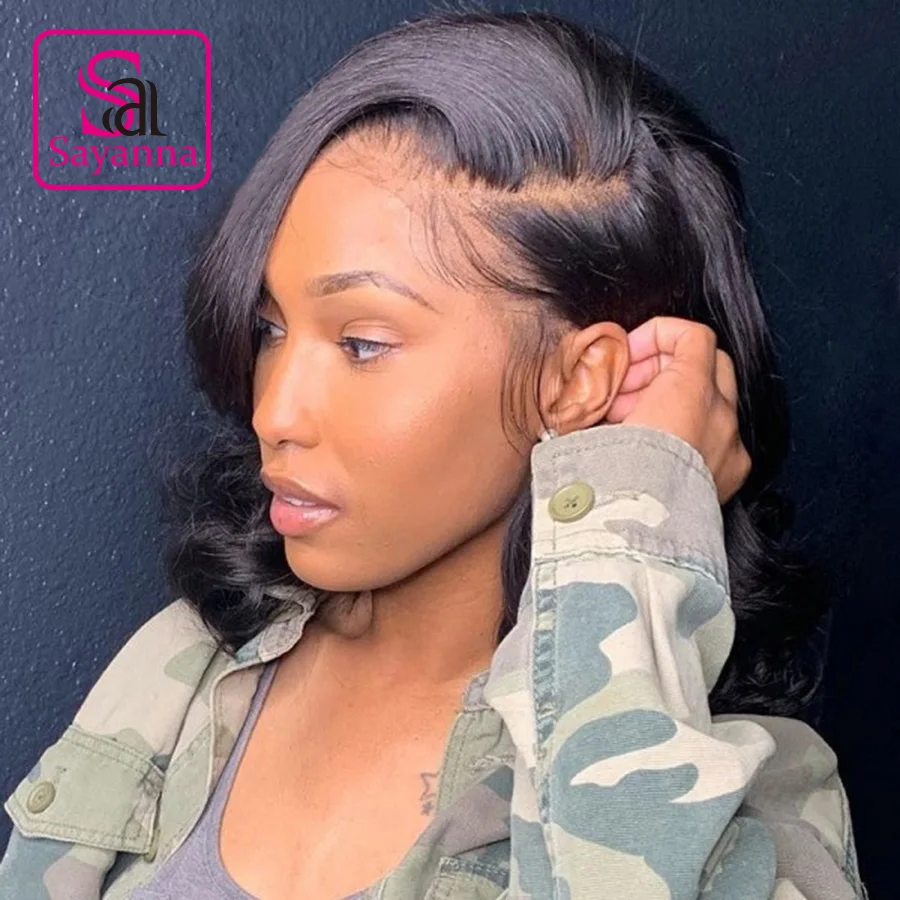 Парик с коротким Бобом, парики из человеческих волос, бразильские волнистые парики без клея, парик с фронтальным париком для черных женщин, 4x4, парик с кружевом, предварительно выщипанные волосы Remy