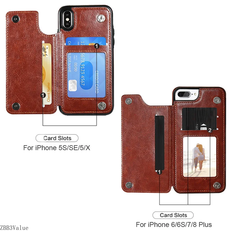 Feature 3Card Slots Back Shell For iPhone X 6 7 8 5 5s 6s Phone case