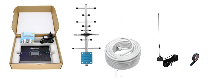 1. Четырехдиапазонный усилитель 700 + 850 + 1700/2100 + 19002. Наружная антенна: 12dbi yagi антенна3. Внутренняя антенна: 4 дБи 360 ° присоска антенна4. Кабель: 13 м