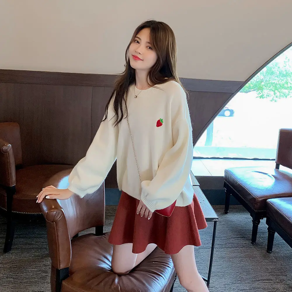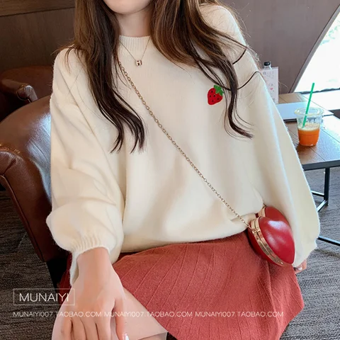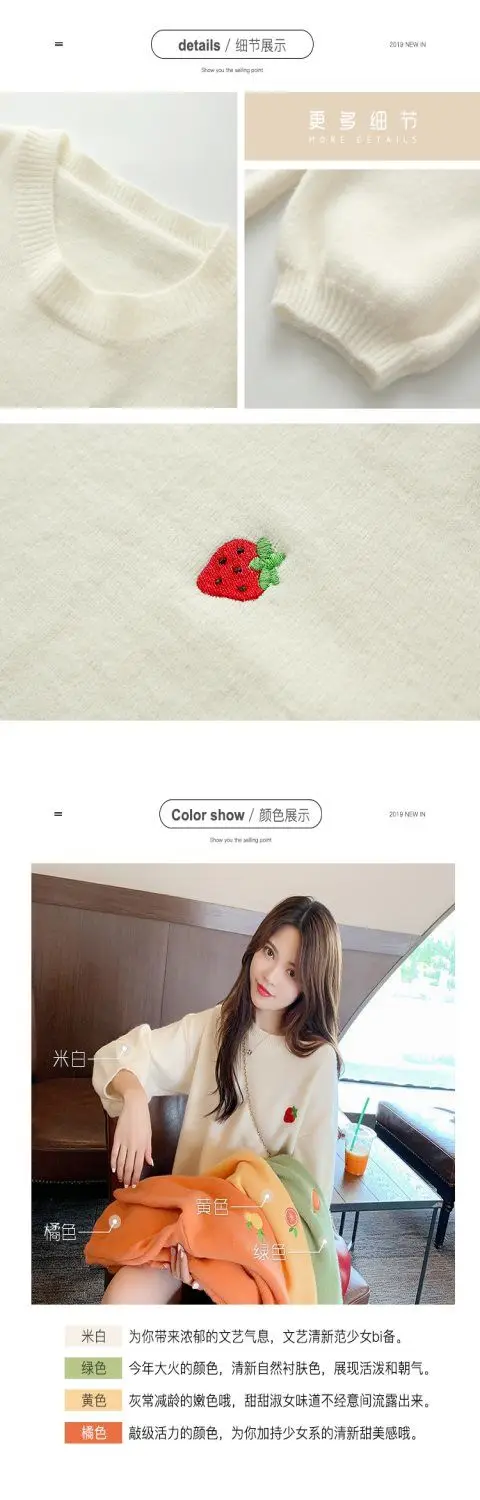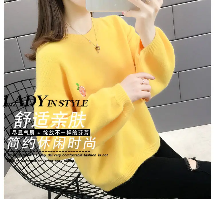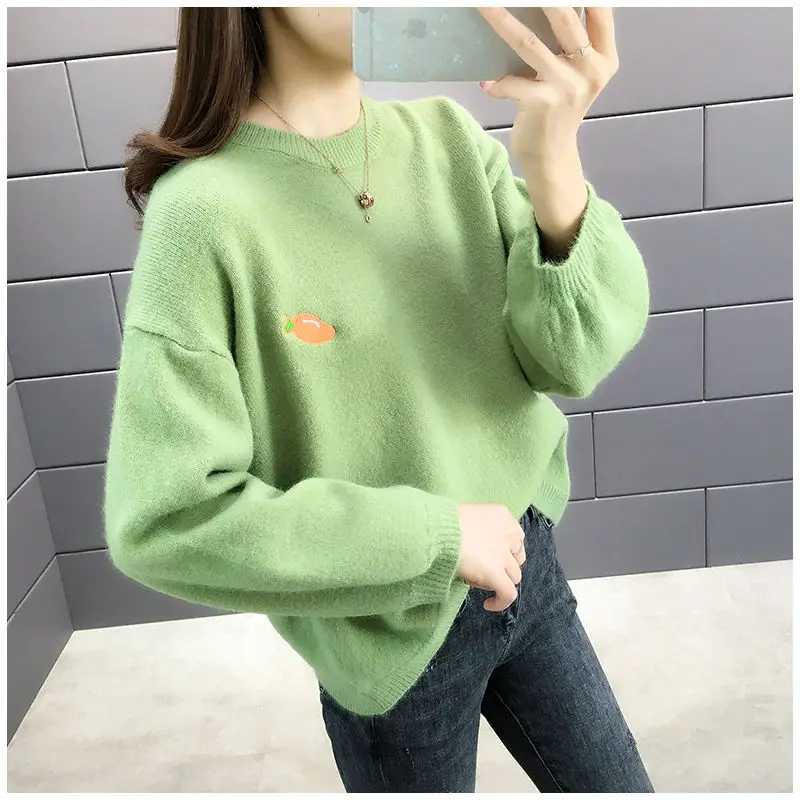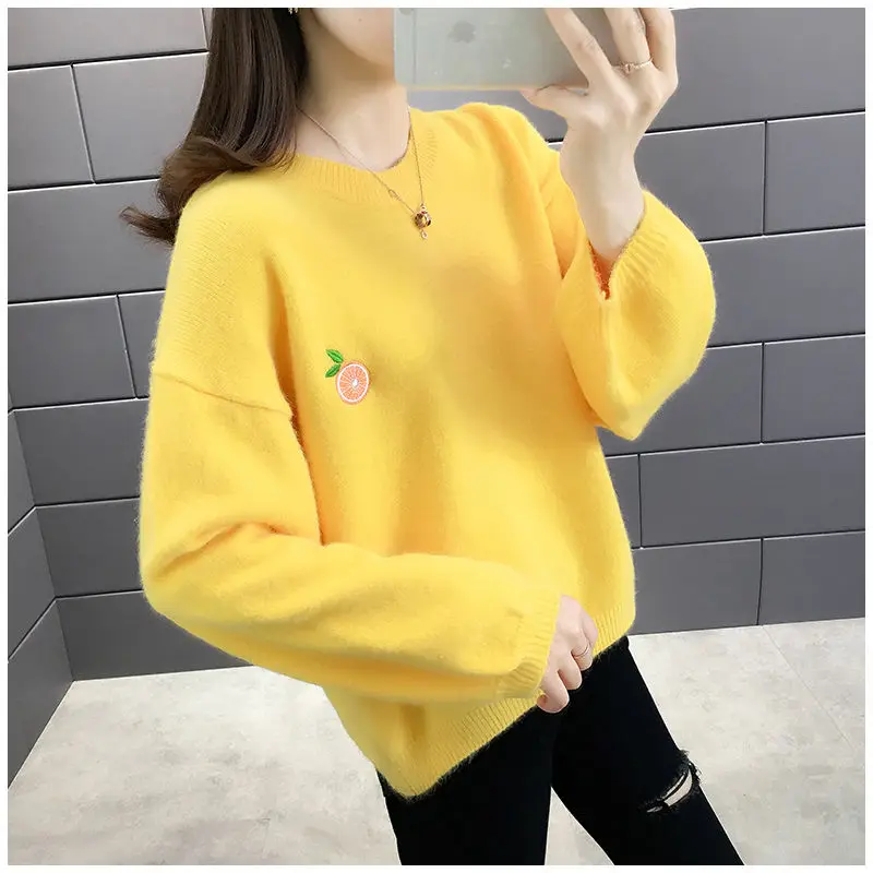 Свитер женский трикотажный с длинным рукавом и вышивкой в виде фруктов