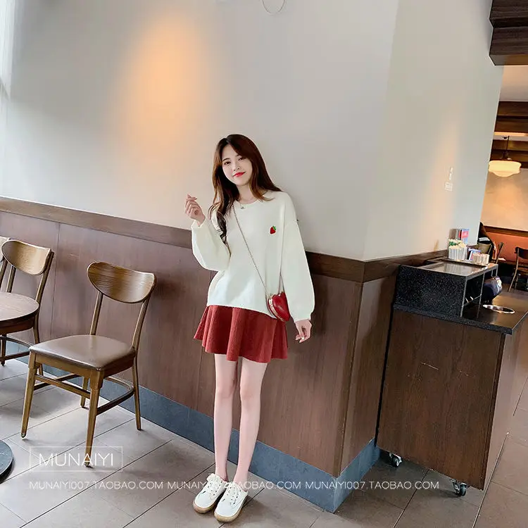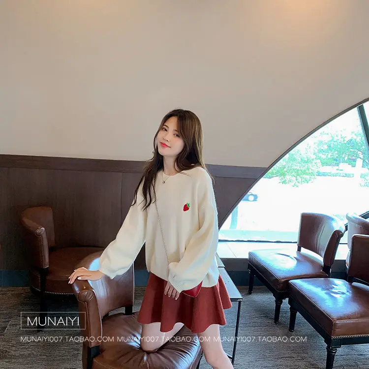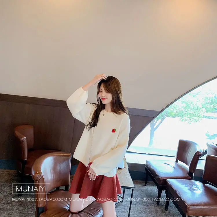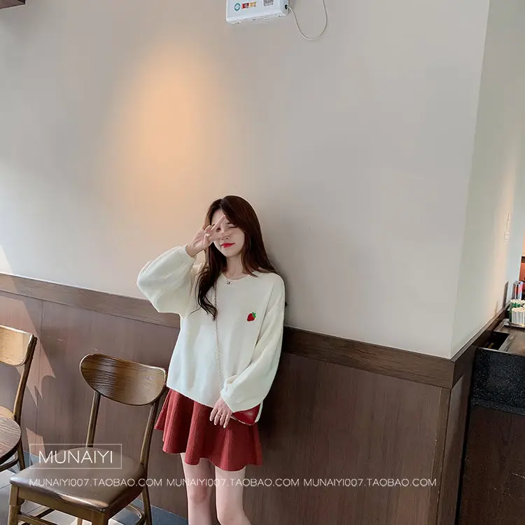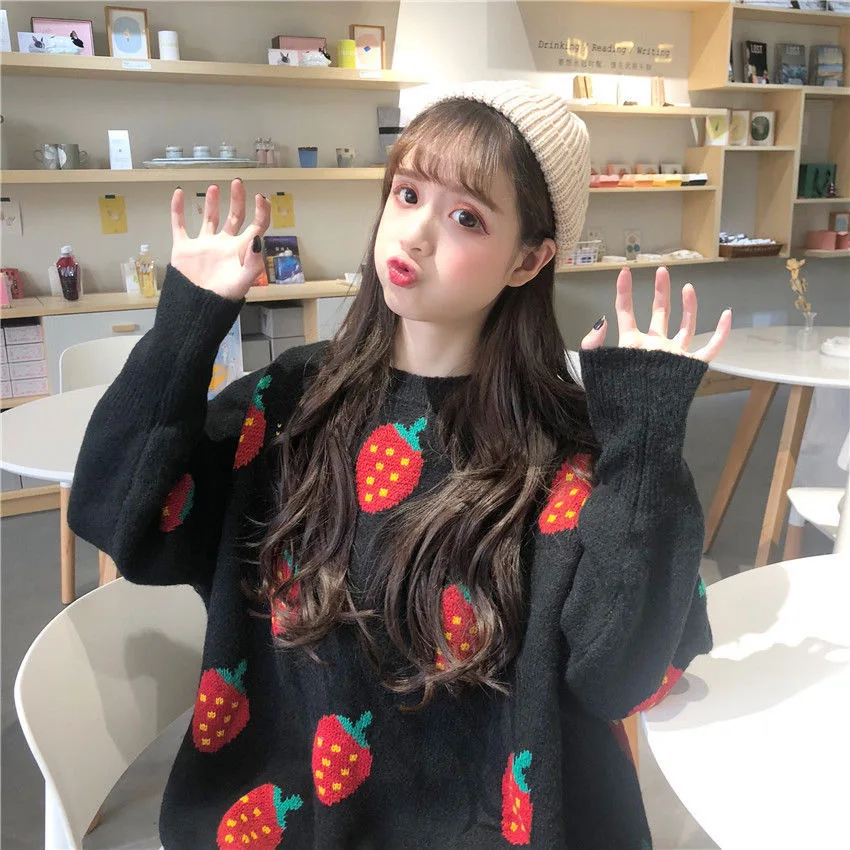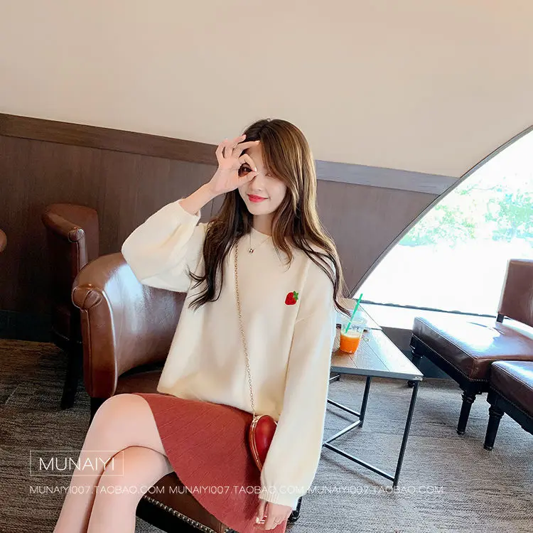 Свитер женский трикотажный с длинным рукавом и вышивкой в виде фруктов