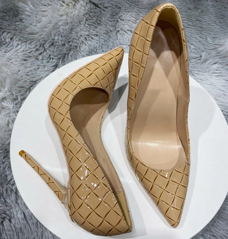 Женские туфли на очень высоком каблуке Veowalk, бежевые, в клетку, ...