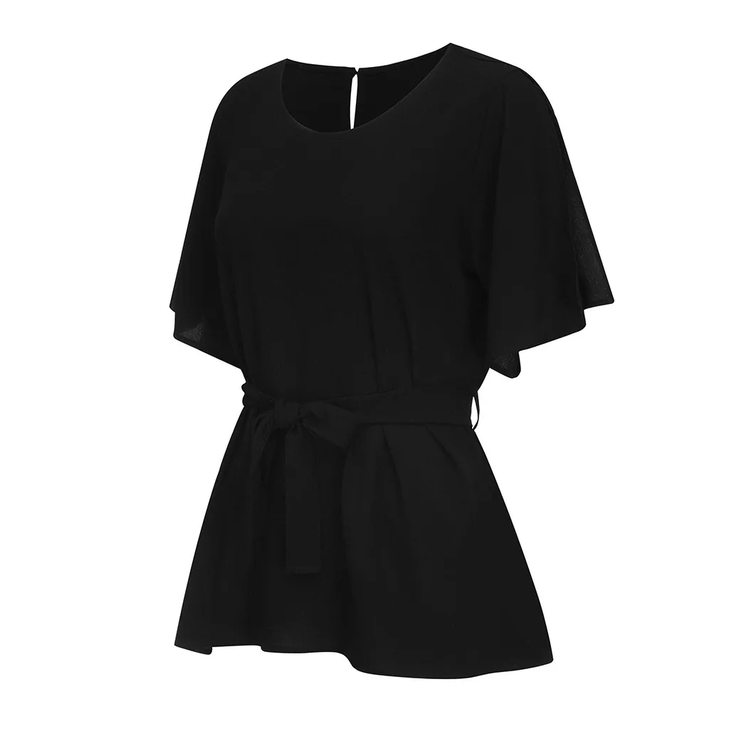 4 # размера плюс шикарные блузки чистый Цвет женские готические ботильоны футболка с короткими рукавами блузки рубашка поясом бантом для отдыха Блузки Топы