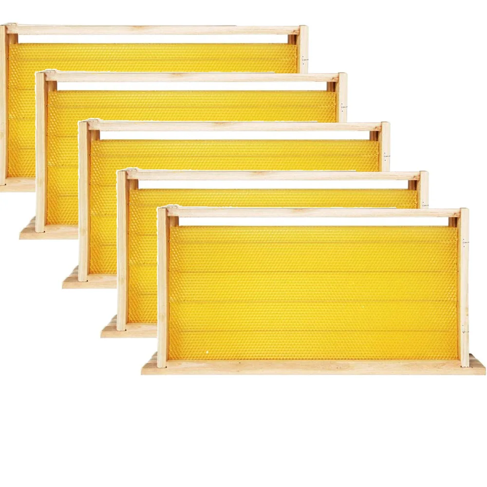 Вощеная основа для пчеловодства с рамами, набор для улей, восковое покрытие, рамки пчелиных ульев, пчелиный воск, 5 шт.