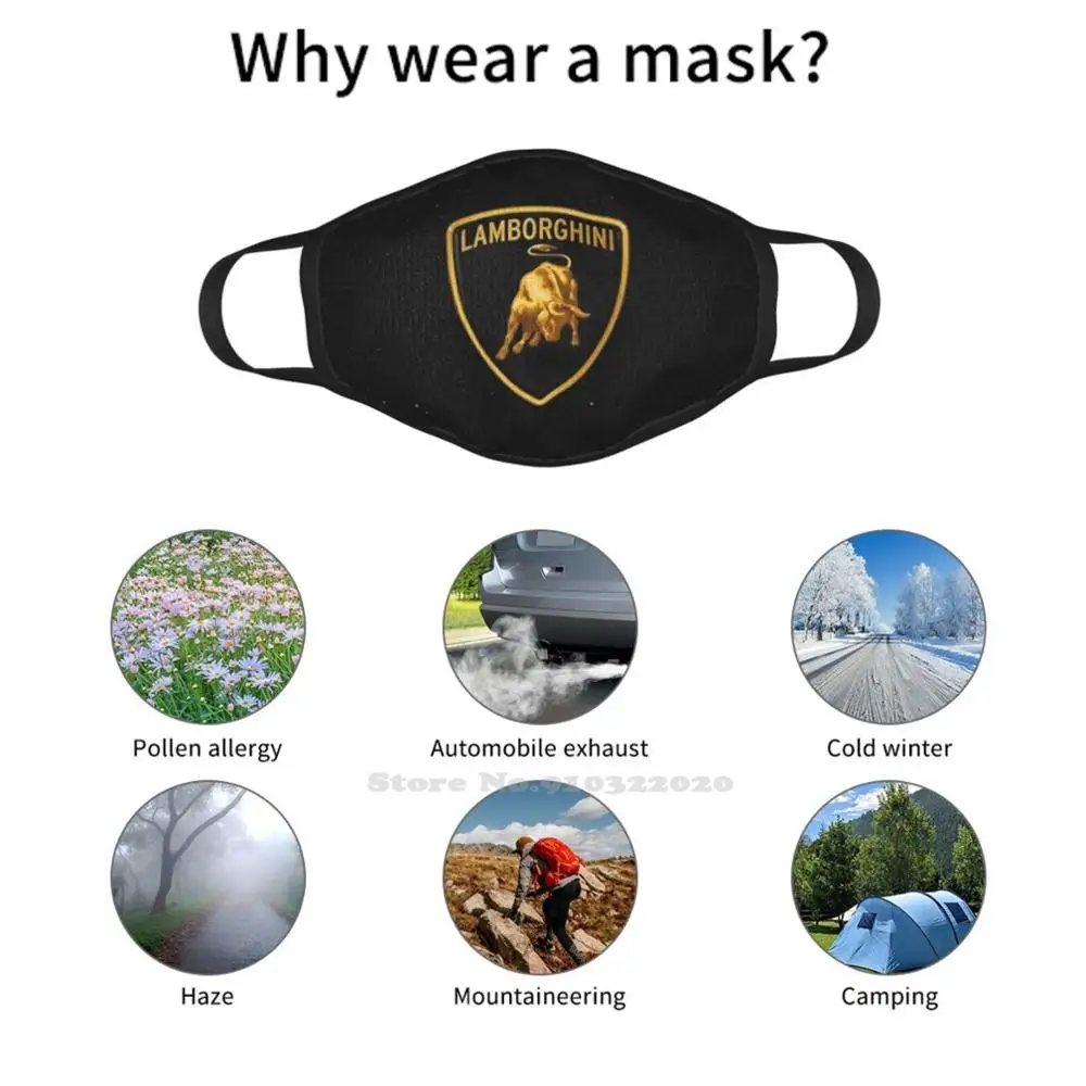 Маска Lambo S.P.A, черная дышащая многоразовая, с логотипом Supercar, Hypercar, Sport Car, Italia