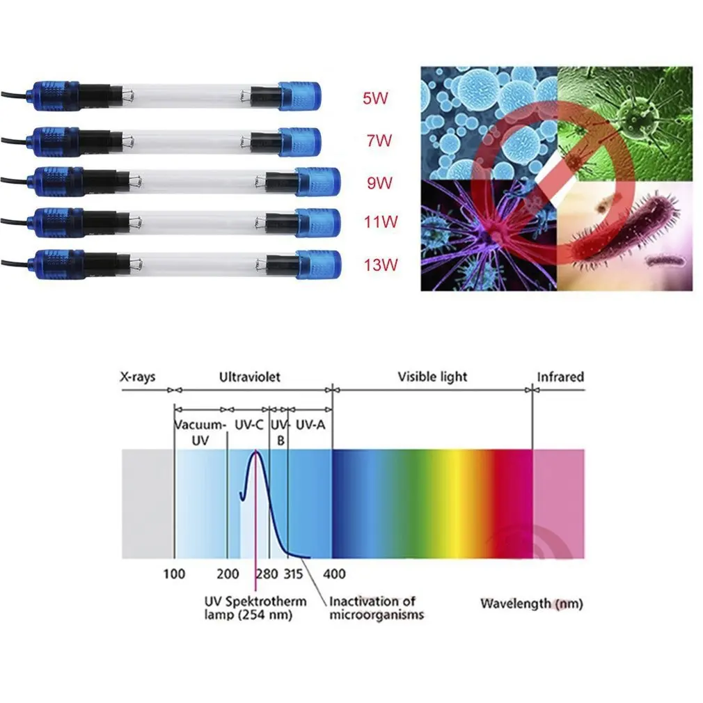 Аквариумная ультрафиолетовая лампа-стерилизатор, погружной коралловый резервуар, бактерицидная лампа, декоративное освещение, погружная лампа для выращивания растений