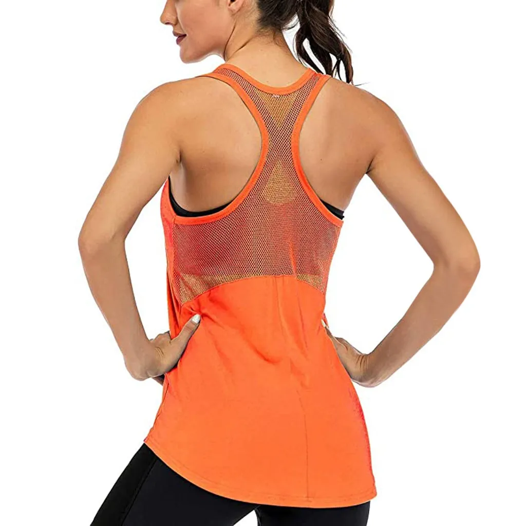 Женские топы без рукавов для занятий йогойСетчатый топ на спине, майка на спине